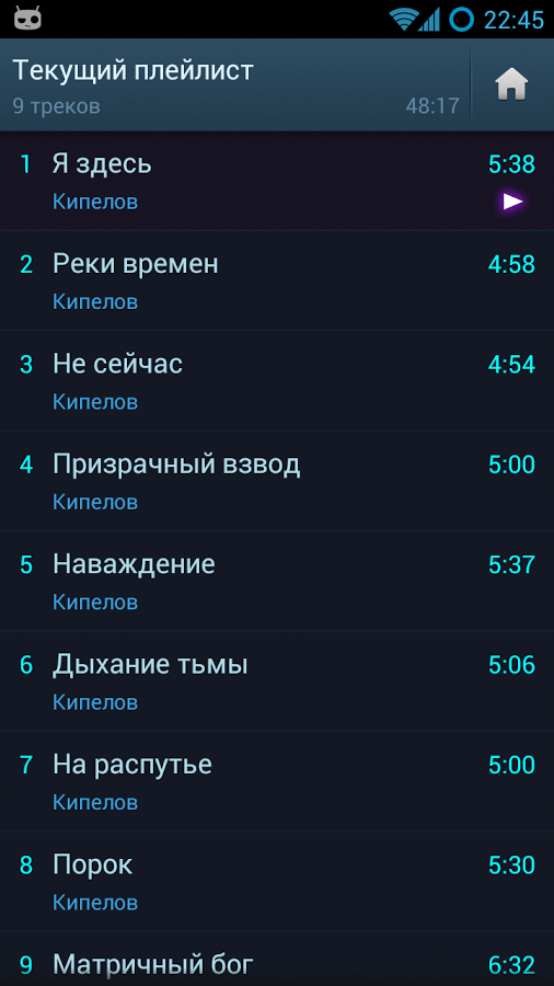 Тоже неплохо звучащий плеер. Разнообразная сортировка музыки,