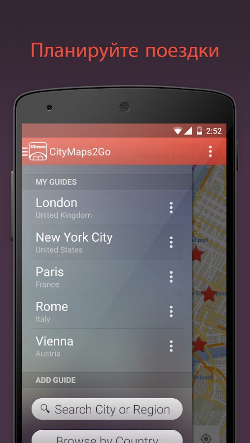 - БЕСПЛАТНО. Просто загрузите и попробуйте CityMaps2Go. Нет никакого риска — мы уверены, что вам понравится приложение!