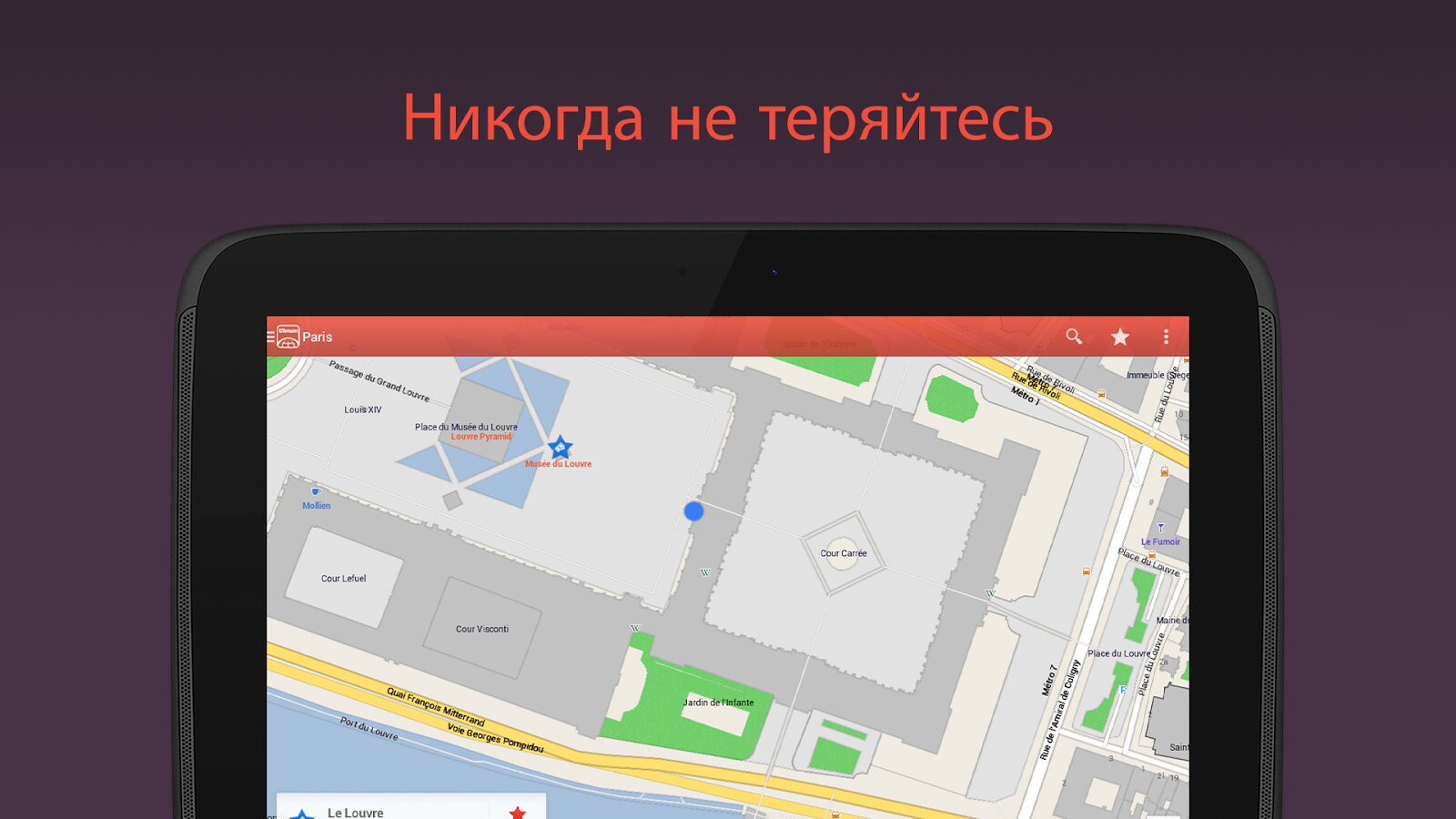 - ПОДРОБНЫЕ КАРТЫ. Вы никогда не заблудитесь. Отображение вашего местоположения на карте даже без доступа в Интернет. Ищите улицы, достопримечательности и прочие объекты — получайте пешие маршруты к нужным вам местам.