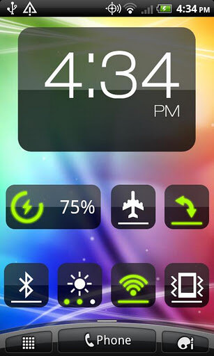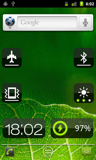 — и 1x1 переключения виджетов для: WiFi, Bluetooth, режима «Самолет»«, режима вибрации, автоматического вращения, автосинхронизации и яркости.