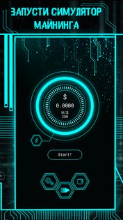 - После старта Вам будет предложено начать процесс майнинга (который является симуляцией, то есть игровым процессом), чем дольше приложение работает в фоновом режиме, тем быстрее Вы достигните цели, ускорить процесс майнинга можно также заходя чаще в приложение или приглашая своих друзей (за это вы получите бонусы в виде игровой валюты).