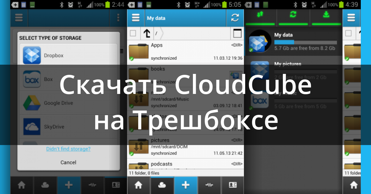 CloudCube — просмотр и синхронизация файлов с облачными хранилищами (Яндекс.Диск, Dropbox, Box, SkyDrive, Google Drive). CloudCube является мощным менеджером просмотра и синхронизации с облачными хранилищами. Уникальные особенности приложения позволят Вам быстро, просто и удобно выполнять любые действия с Вашими хранилищами.