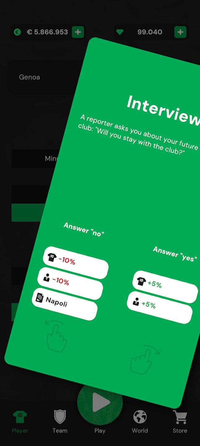 Игровой мир живет своей жизнью, с реалистичными турнирами и таблицами. Вы будете принимать ключевые решения: от ответов в интервью до выбора следующего клуба. Улучшайте характеристики игрока – скорость, удар, лидерство – чтобы превратиться в настоящую легенду. Участвуйте в престижных соревнованиях, таких как Лига Чемпионов, и собирайте коллекцию индивидуальных наград.