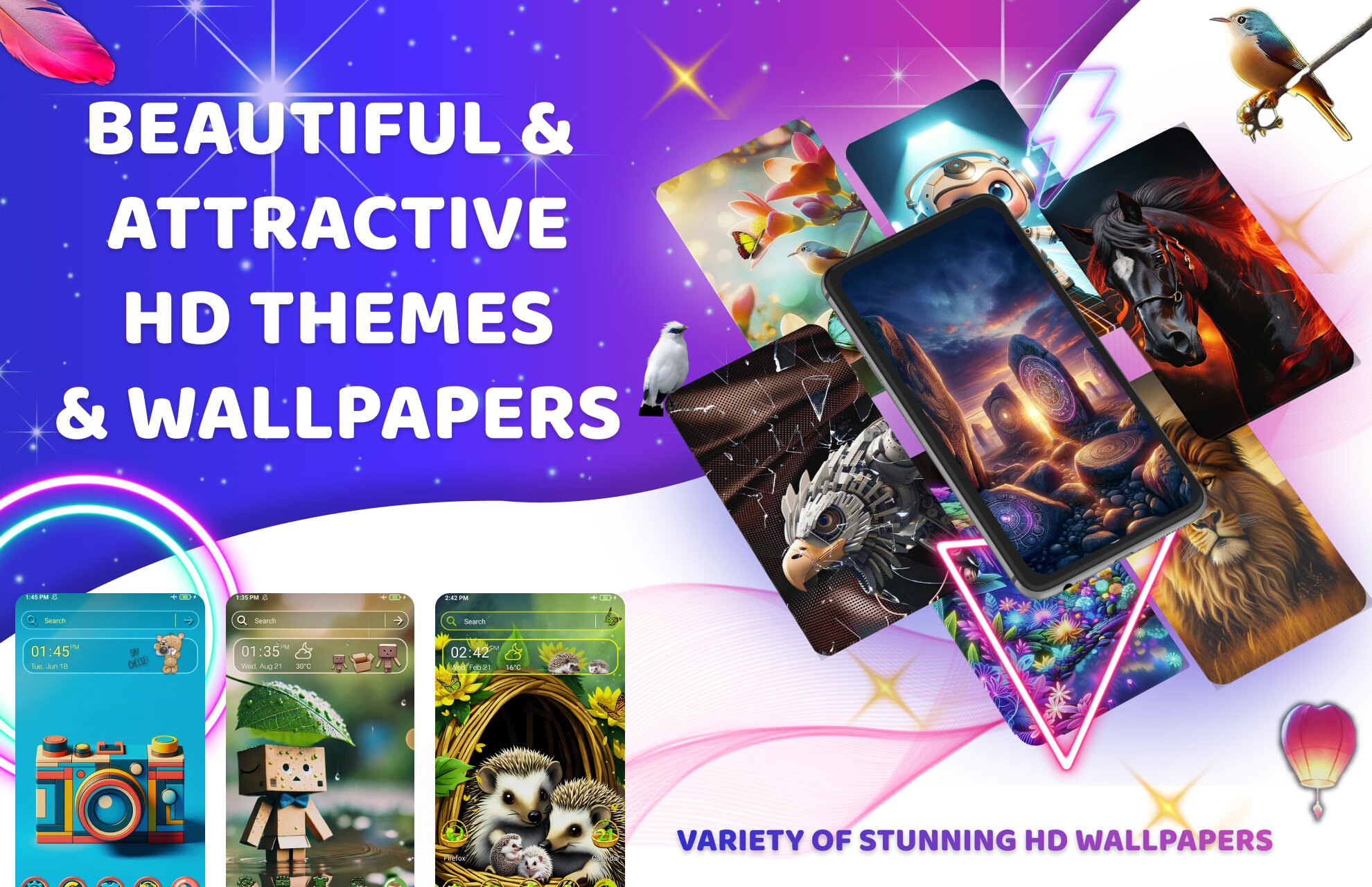 - Глубокая персонализация с неограниченным количеством бесплатных тем, HD-обоев и 3D-эффектов.