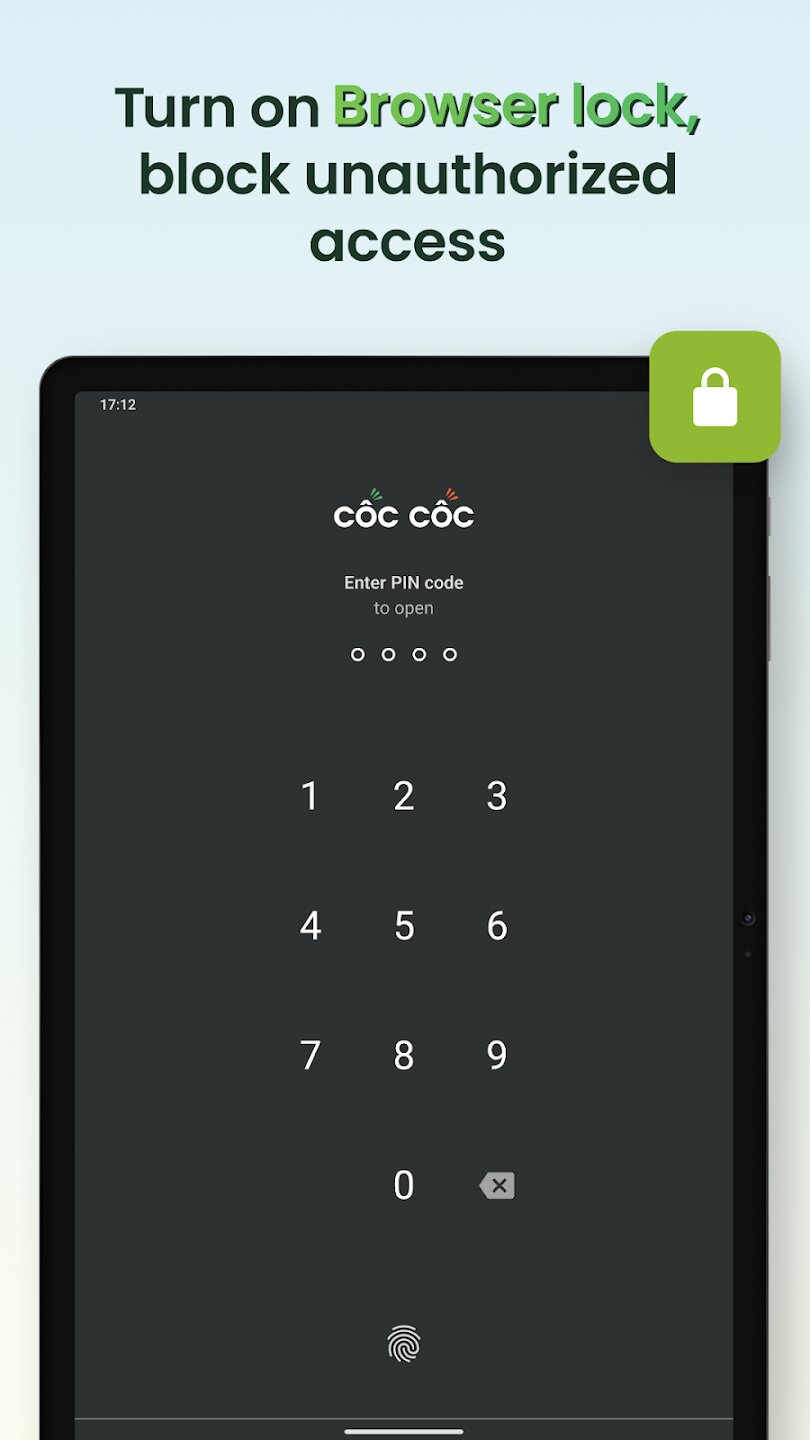 - Блокировка приложения и режима инкогнито с помощью PIN-кода/биометрических данных