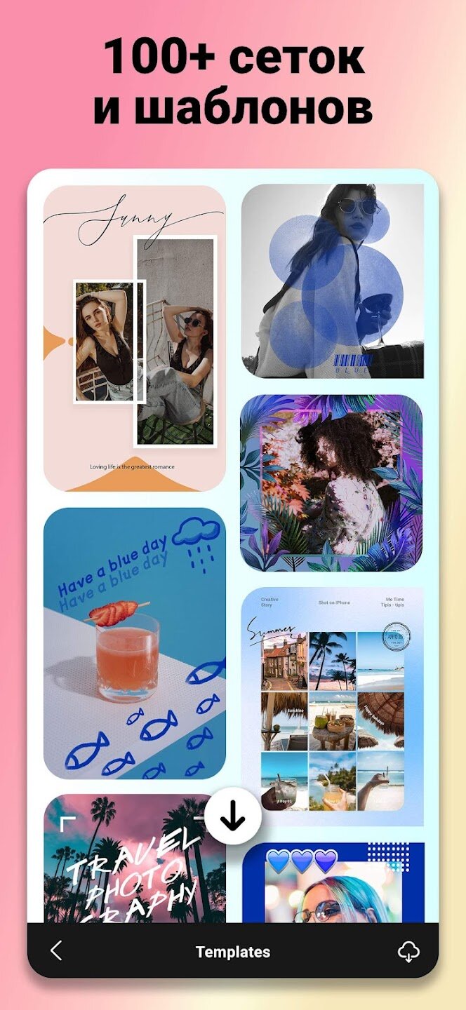 - Создавайте коллажи из нескольких фотографий с помощью универсальных макетов и шаблонов.