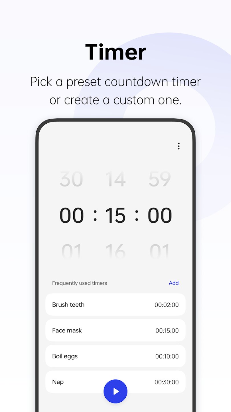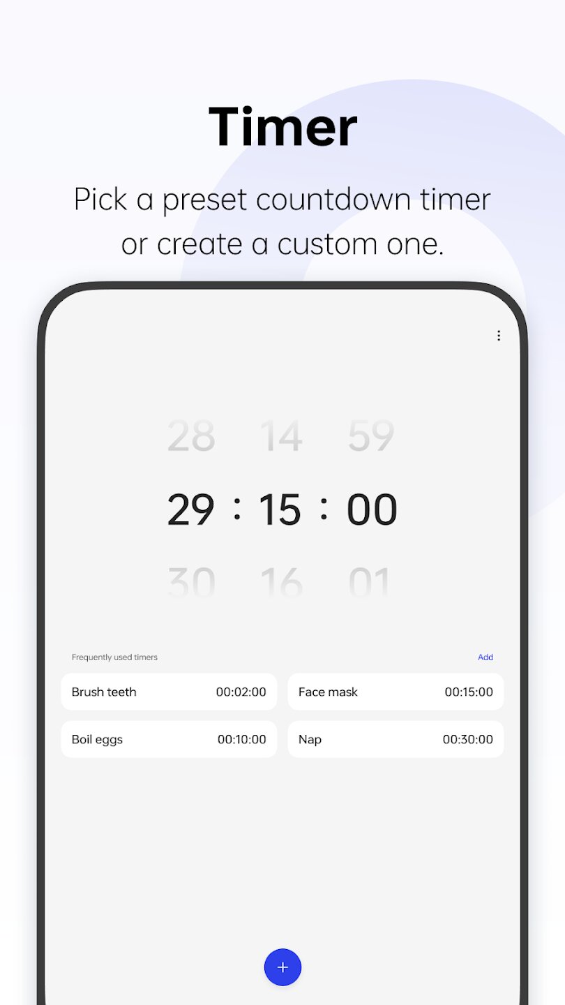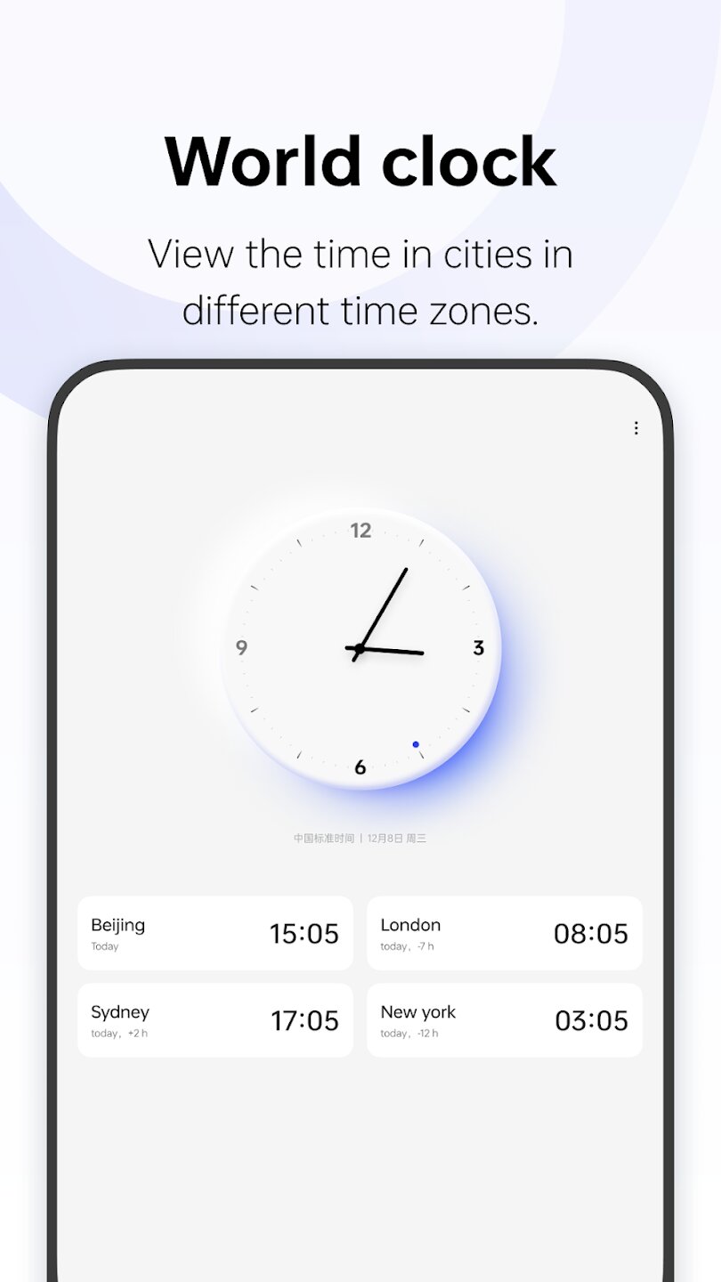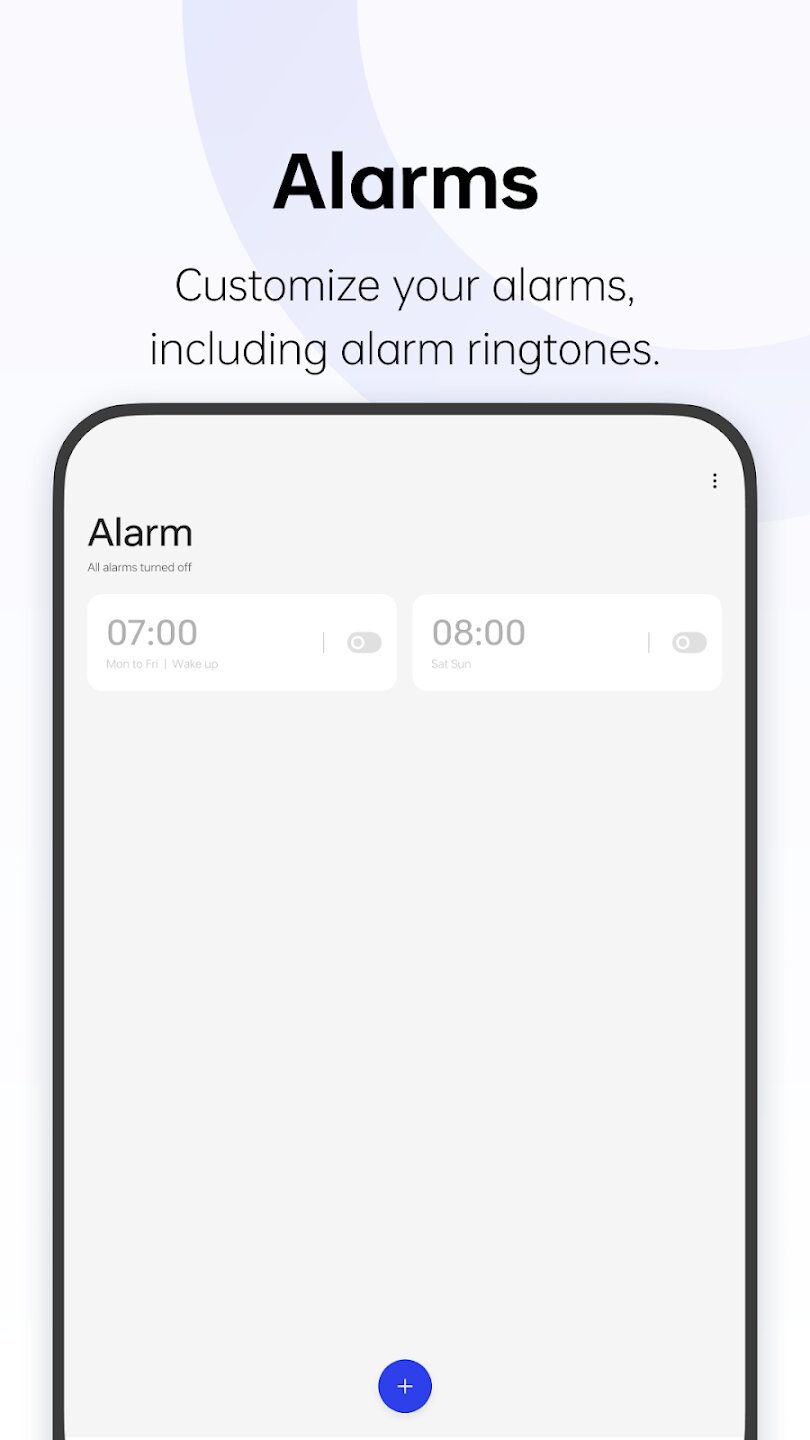 ColorOS Clock — это универсальное приложение для управления временем, созданное с акцентом на точность и удобство. Эта утилита объединяет основные инструменты для работы со временем — будильники, мировые часы, секундомер и настраиваемые таймеры — в лаконичном и интуитивно понятном интерфейсе, который поможет вам с легкостью организовать свой ежедневный график.