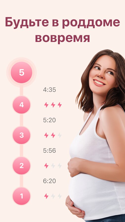 Это приложение было разработано для мам, которым предстоит рожать, чтобы легко определять время схваток. Просто засеките время нескольких схваток, и приложение сообщит вам, на какой стадии родов вы находитесь.
