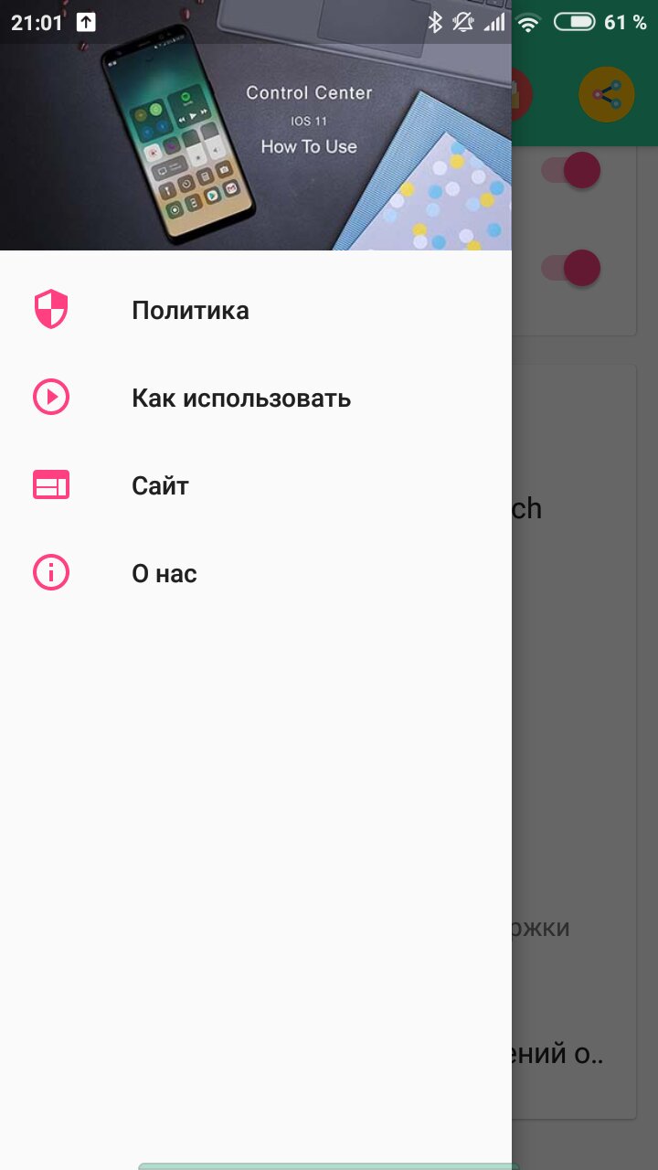 Центр управления iOS 15 – универсальная программа, имитирующая панель быстрого доступа iOS в девайсах, работающих на базе операционной системы Android. С его помощью пользователь сможет быстро перейти к некоторым параметрам и приложениям. Для того чтобы открыть Центр управления, необходимо провести пальцем свайп в верхнюю, правую часть, или же вдоль края дисплея по левому краю. Для его закрытия нужно провести свайп пальцем вниз, коснуться верхней части дисплея, или же нажать одну из сенсорных кнопок. Для изменения способа открытия или закрытия достаточно лишь нажать на пункт Control Center в самом приложении.