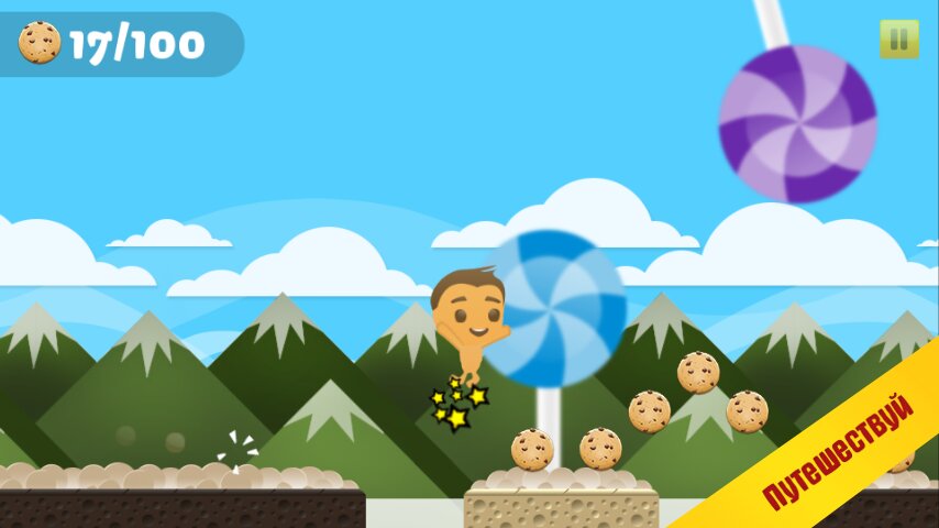 Огромный опасный мир открылся перед тобой, твоя задача — собрать всё печенье, которое хитрый злодей украл из сладкого королевства. Приключения ждут тебя!