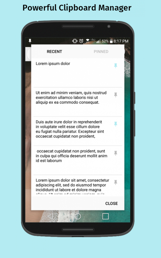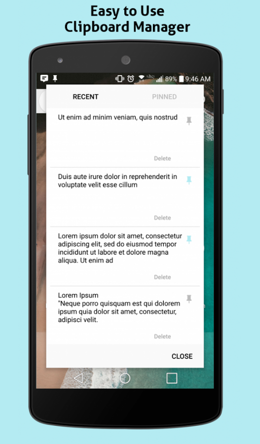 CopyClip — небольшая утилита, ведущая журнал буфера обмена на устройстве. Любой текст, скопированный вами, хранится в этом приложении. В настройках CopyClip можно ограничить количество сохраняемых записей (например, сохранять только последние пять записей). Утилита весит всего 2 МБ, а сохраняемый текст вряд ли занимает много места. Тем не менее, весь журнал можно удалить нажатием одной кнопки. Программа распространяется бесплатно и без рекламы.