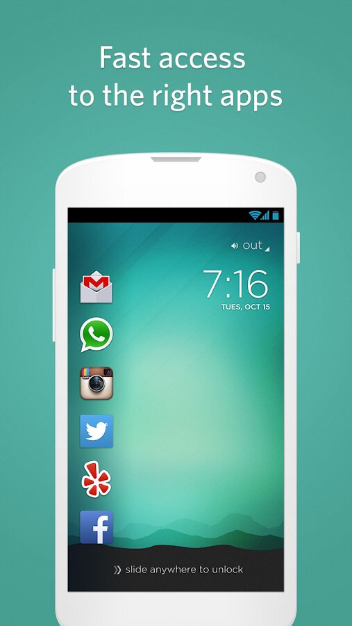 Это достаточно минималистичный и инновационный блокировщик экрана на ваш смартфон. С помощью него вы сможете одним движением открывать необходимые приложения. При использовании Cover перед вами, с левой стороны, на экране появляется список приложений, которые могут быть вам нужны. Программа запоминает приложения, которыми вы пользуетесь чаще всего и выводит их на главный экран.