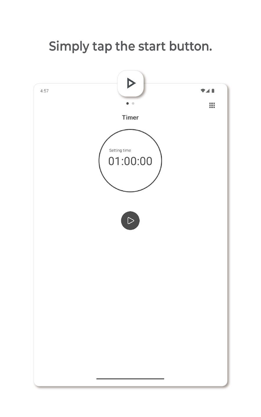 - Простой запуск таймера одним касанием с продолжительностью по умолчанию в один час.