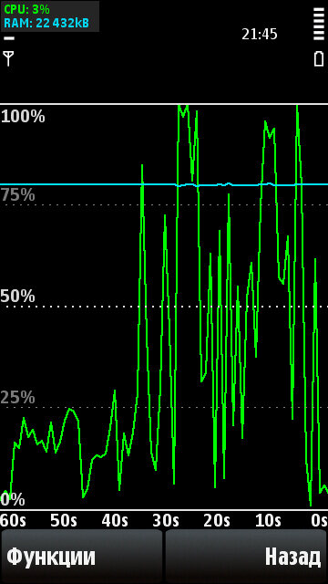 Прогрмма предназначена для просмотра системной информаций.Загрузка cpu и Ram. В верхнем левовом углу экрана будет стоять виджэт показывающий информацыю. Программа оперативки не ест.