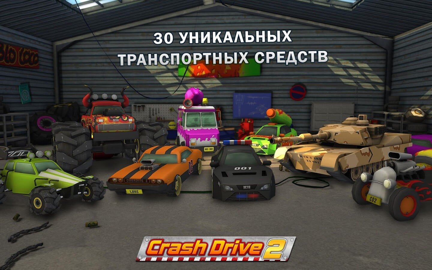Crash Drive 2 — Освобождение из A10: продолжение великолепной 3D-игры Crash Drive! Выбери машину в гараже и приготовься к обалденно веселой поездке.