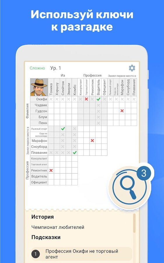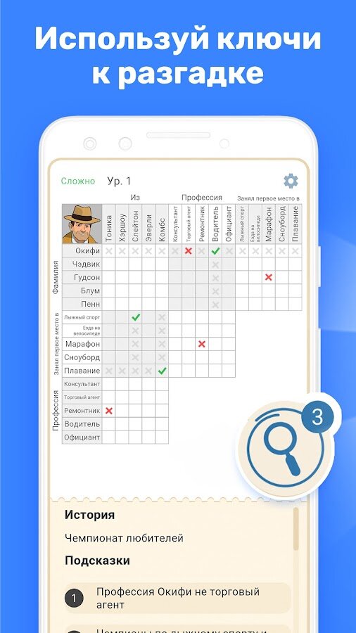 - Погружайся в головоломки разных уровней сложности.