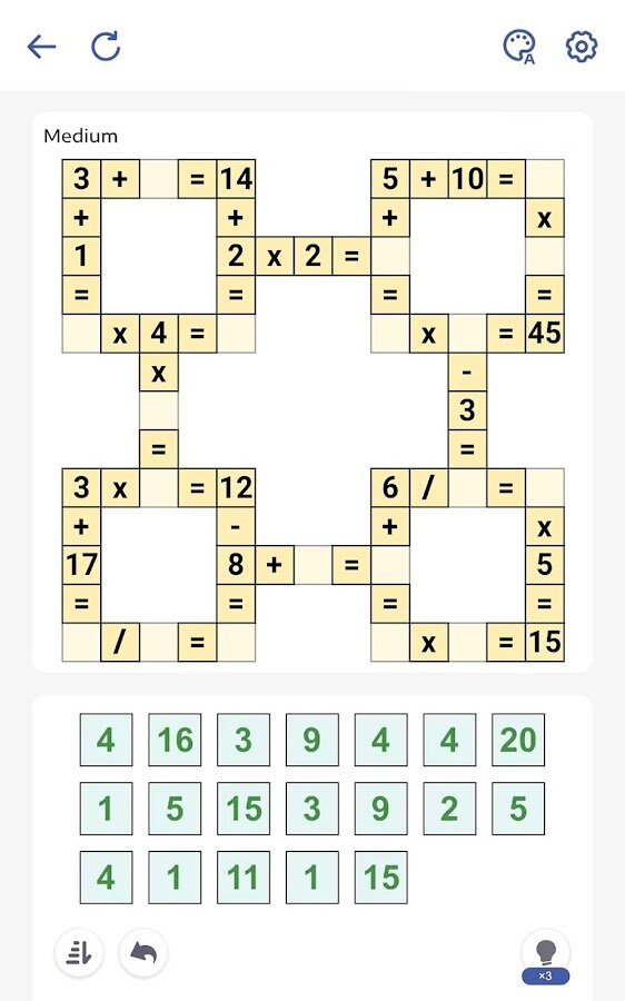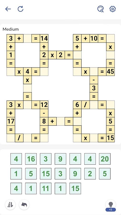 Математические игры Crossmath – это увлекательная и сложная математическая головоломка, идеально подходящая для тренировки вашего мозга и улучшения математических навыков. С различными уровнями сложности и множством функциональных возможностей, эта игра предлагает уникальный способ проверить и развить свои способности.