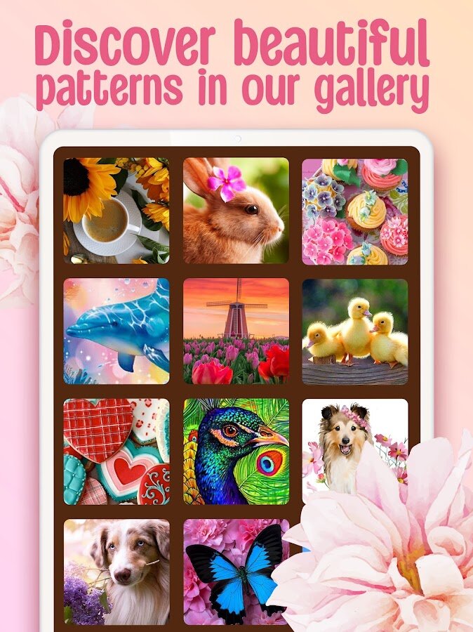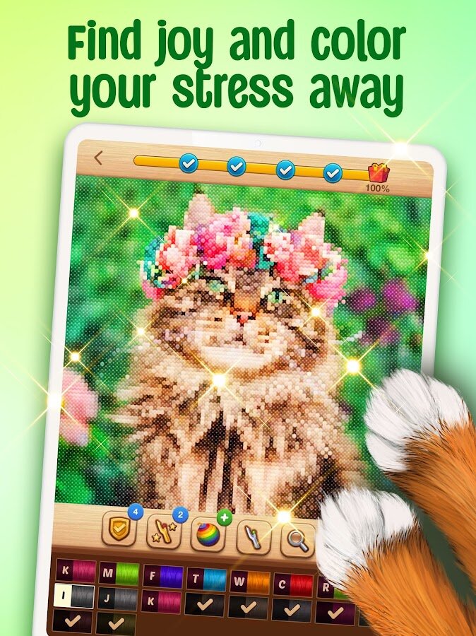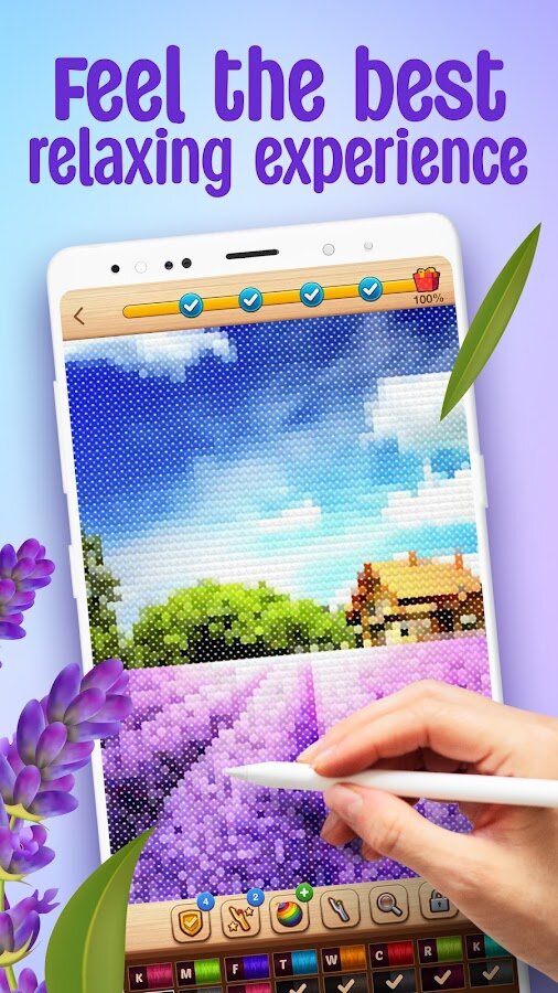 Благодаря Cross-Stitch вы сможете не только хорошо провести время и отдохнуть, но и улучшить свою концентрацию, развить творческий потенциал и просто насладиться милыми картинками. Cross-Stitch обладает огромной библиотекой самых разнообразных раскрасок, среди которых вы найдете милых животных, потрясающие пейзажи, нежные цветы и многое другое. Ваша основная задача – раскрасить картинку по номерам, а, точнее, вышить ее! Каждая клеточка картинки обозначена определенным номером, который, в свою очередь, является номером цвета на панели с нитками. Все очень просто – выбираешь цвет и закрашиваешь клетки!