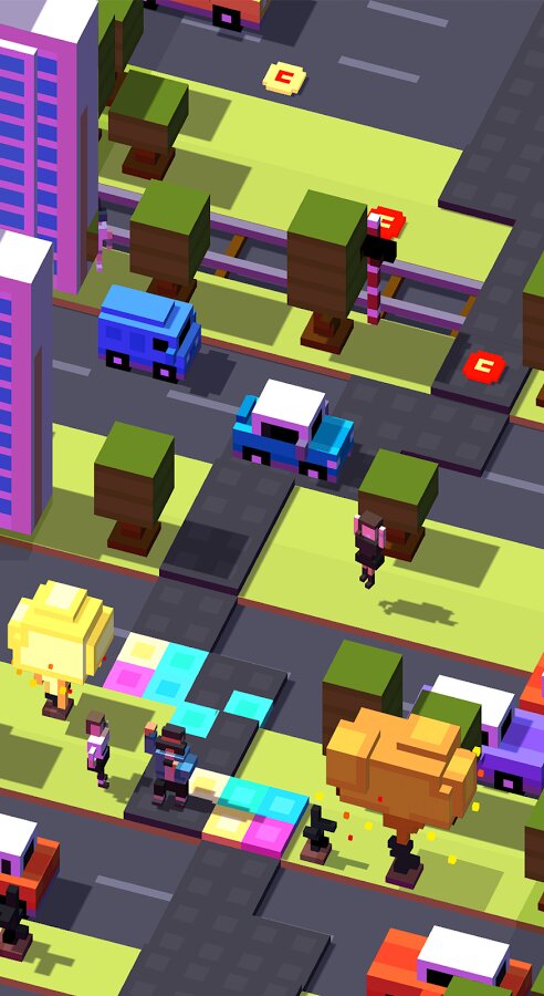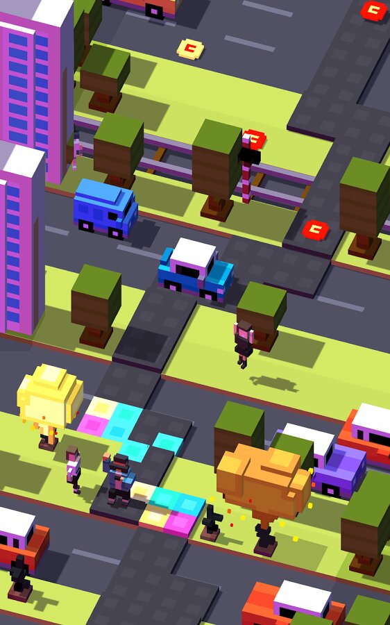 В целом игровая механика чем-то напоминает изрядно поднадоевшую Flappy Bird, преодолевая бесконечное количество автомобильных или железнодорожных магистралей за каждый шаг вы будете получать очки, итог подводится после смерти персонажа. За полученный опыт и собранные монетки вы сможете открыть дополнительных героев.