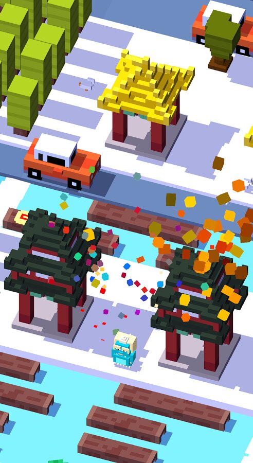 Crossy Road — бесконечная аркада в которой вам предстоит выполнить нелегкую миссию, а именно взяв на себя управление птичкой попробовать перевести ее через оживленные автомобильные шоссе, железнодорожные пути или же через бурные реки. Возможно на первый взгляд задача покажется проста, но не спешите с выводами. Транспортные артерии просто кишат транспортом и довести персонажа до финиша дело далеко непростое. В столь нелегком деле несколько поможет понятное и простое управление при помощи тапов и свайпов.