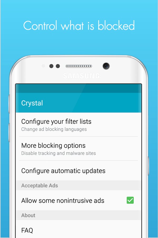 Специальная версия блокировщика Crystal для стандартного браузера в смартфонах Samsung. Приложение совместимо только с Samsung Internet версии не ниже 4.0.