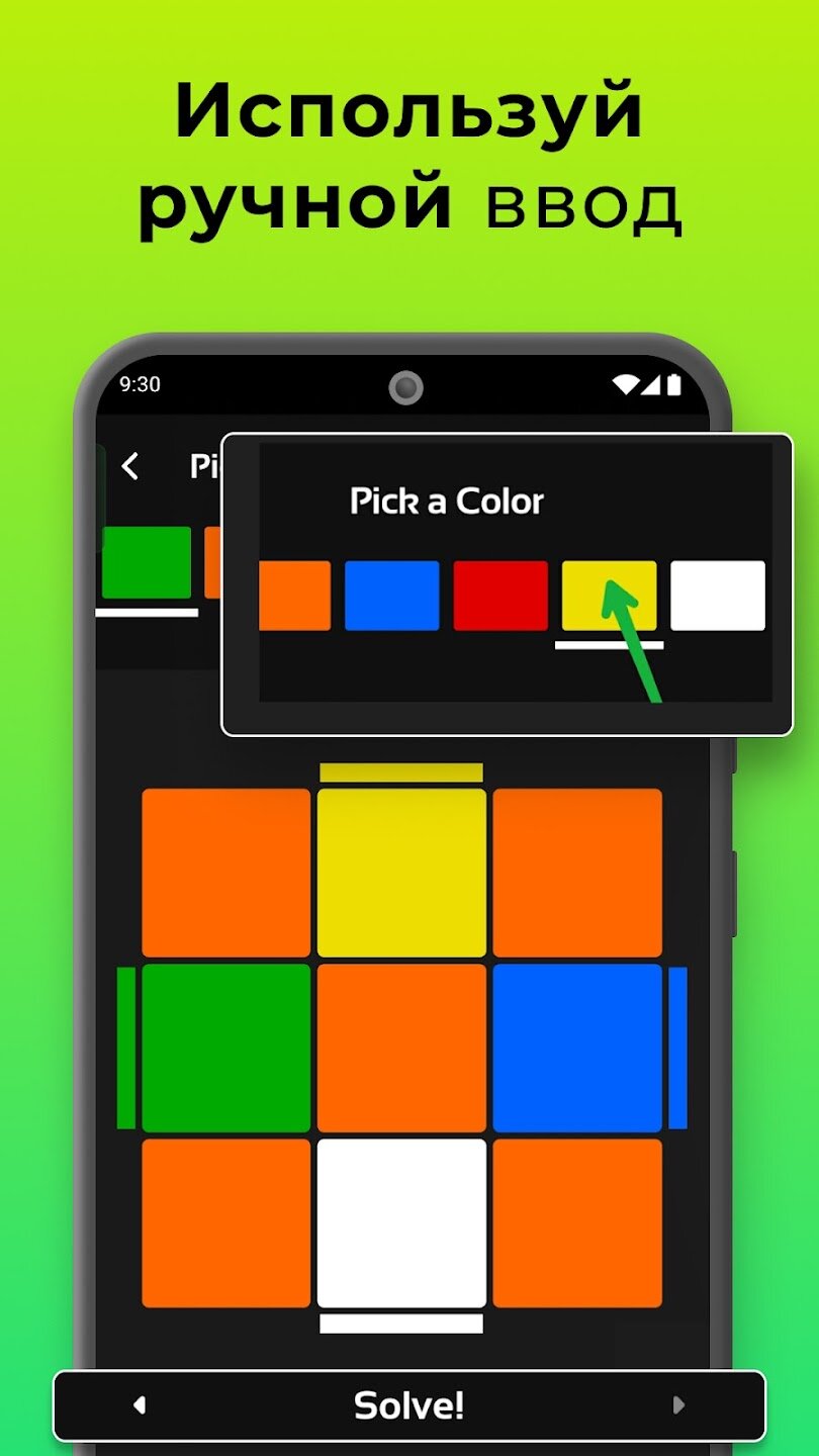 - Несколько вариантов ввода: ручной ввод или сканирование камерой для фиксации состояния куба.