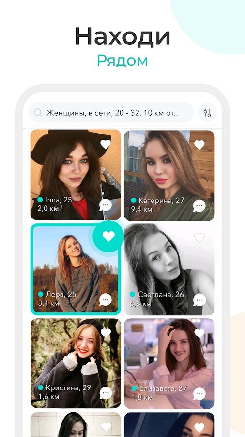 - поисковые фильтры – выберите пол, возраст и расстояние, чтобы найти свой тип