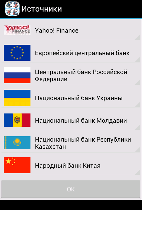 Доступны текущие котировки от Yahoo Finance и актуальные официальные курсы Европейского центробанка и некоторых национальных банков.