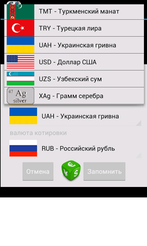 Базовая валюта и валюта котировки выбираются пользователем из списка при добавлении или замене валютной пары.