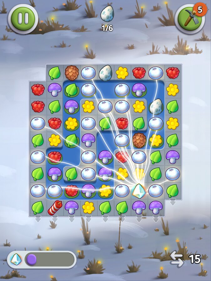 - Комбинируйте фишки и используйте взрывные бустеры, чтобы получать награды.
