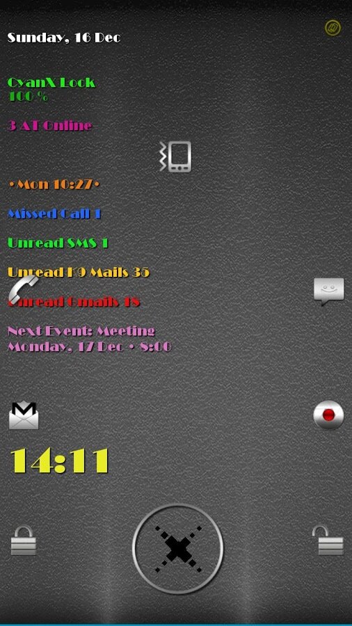 CyanX Lock — Блокировщик экрана. Варианты разблокировки: жесты, чувства, датчик, пользовательские фоны, цвета, размеры, звуки. Подробнее написано в About программы.