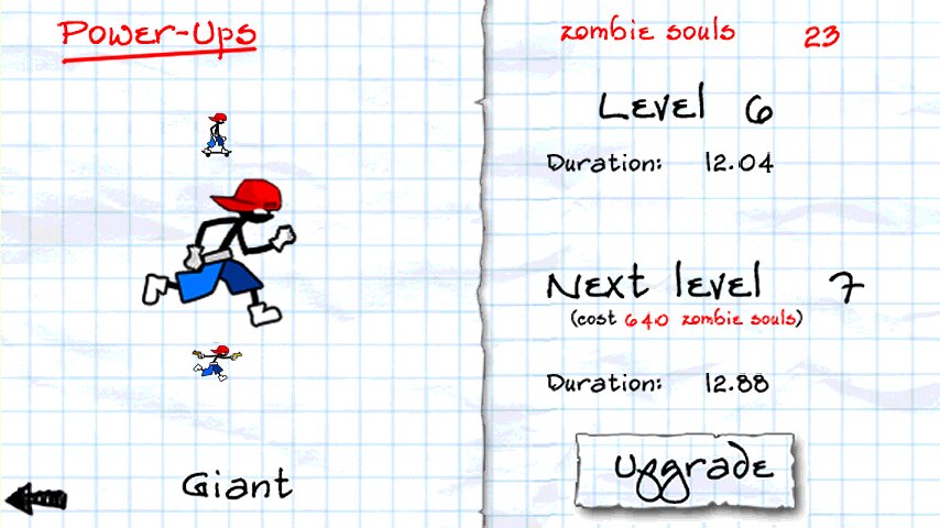 Убегайте от зомби, используйте скейтборд, пистолеты и превращение в ГИГАНТа. Улучшайте свои способности убивая зомби. Игра напоминает Subway Surf или TempLe Run, но вы бегаете в 2D. Вместо поездов у вас здания, промахнувшись мимо которых вы погибаете, а вместо горилл или охранника с собачкой тысячи зомби.