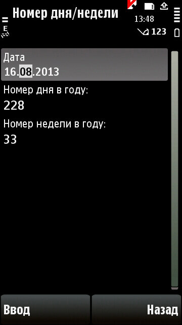 вводятся отдельно день, месяц и год. Номер дня/недели — показывает