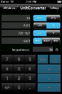dB Calculator — перевод децибел, дБм в отношения напряжений и мощностей; сложение и вычитание сигналов в разных единицах измерения; перевод КСВ, отраженной мощности и др. Программа бесплатная, не содержит рекламы и не требует никаких разрешений.