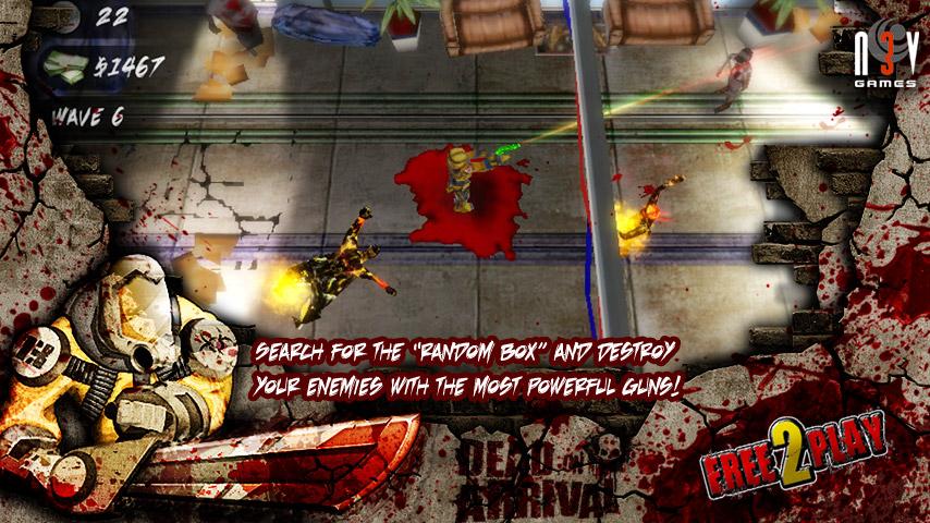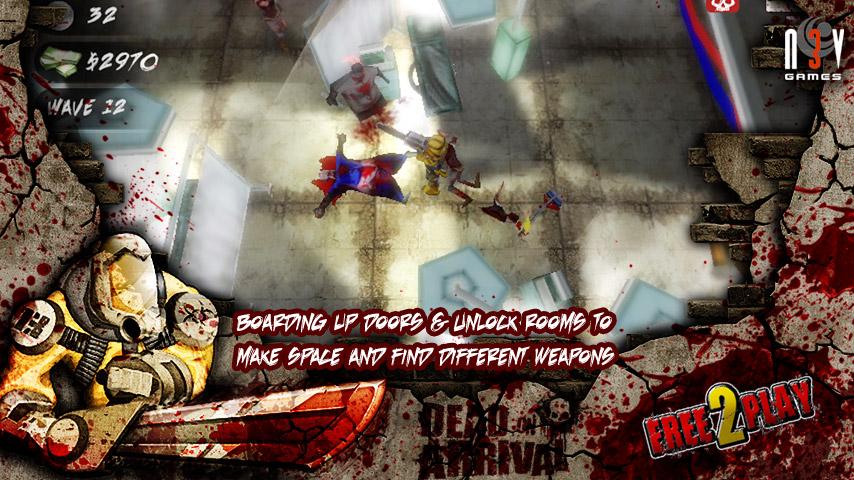 Dead on Arrival - это очень динамичный и забавный шутер от третьего лица. В городе взорвалась бомба и многие люди были ранены. Их доставили в больницу, и через некоторое время у всех остановилось сердце. В результате, больница была изолирована а вы остались внутри один-на-один с зомби. Непонятно откуда взялся целый арсенал оружия, который будет веселить вас на протяжении всей игры. На вас будут нападать волны мертвецов, а вам придется их убивать. На вырученные деньги обновляйте свое вооружение и пополняйте боезапас. В игре вам будут попадаться ловушки, которые не раз спасут ситуацию. Терминалы обновят вашу броню, повысят скорость и отремонтируют вас.