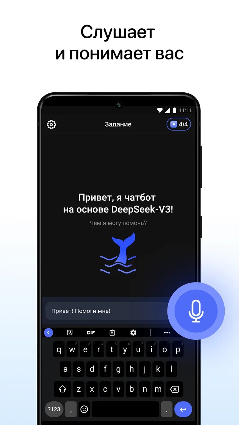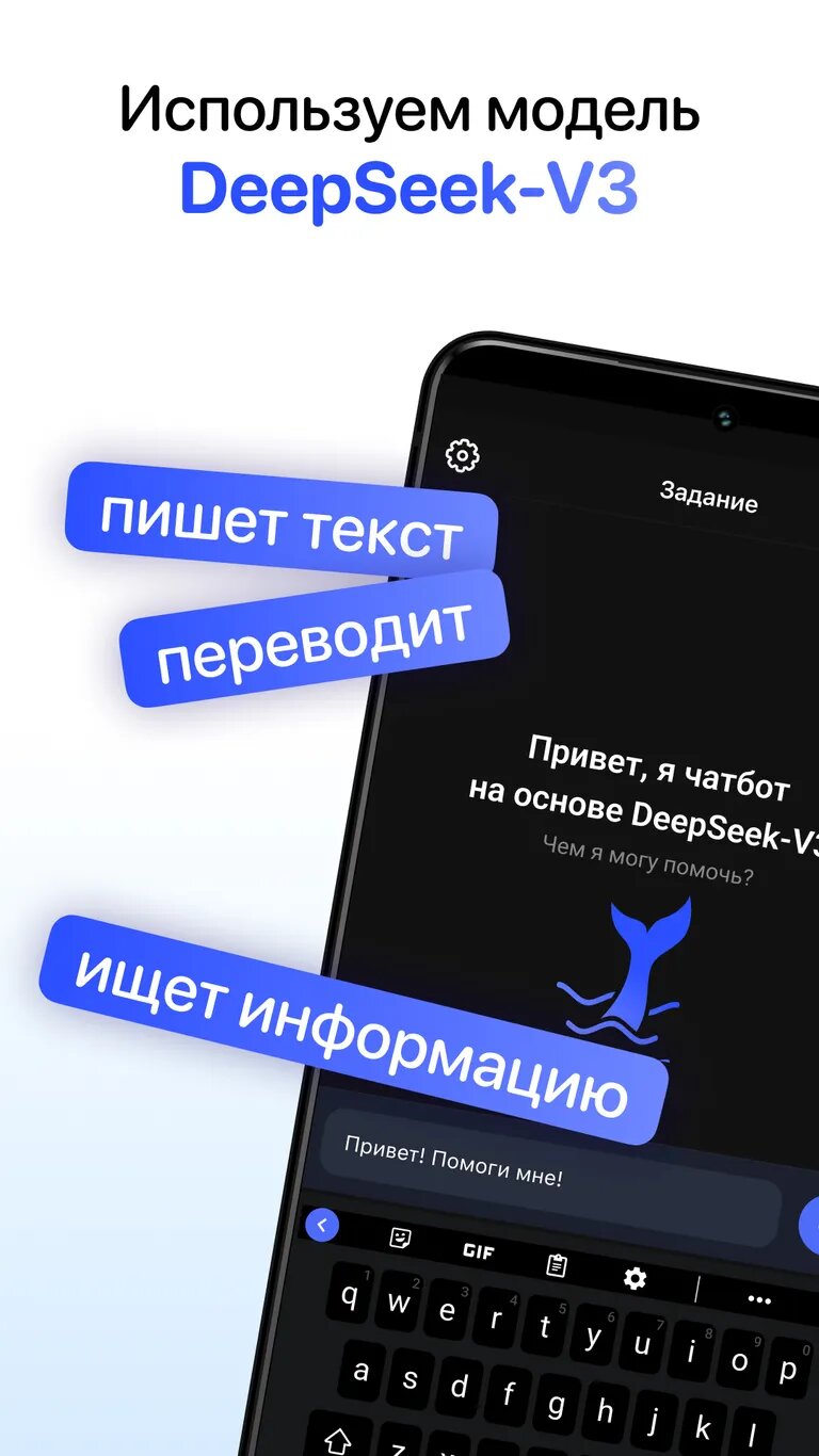 Deep AI Chat — это приложение-помощник на базе искусственного интеллекта, работающее на передовой нейронной сети DeepSeek-V3.