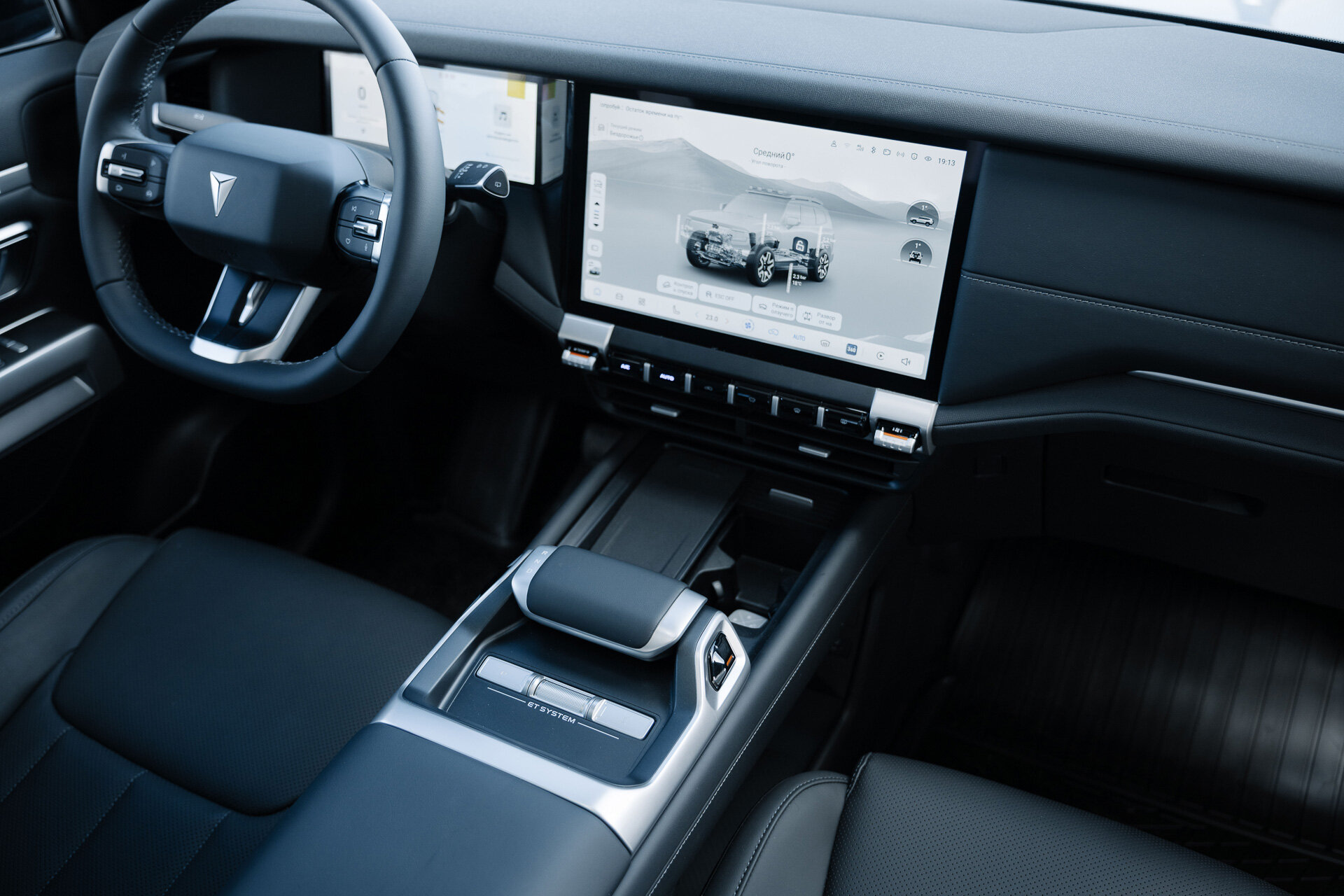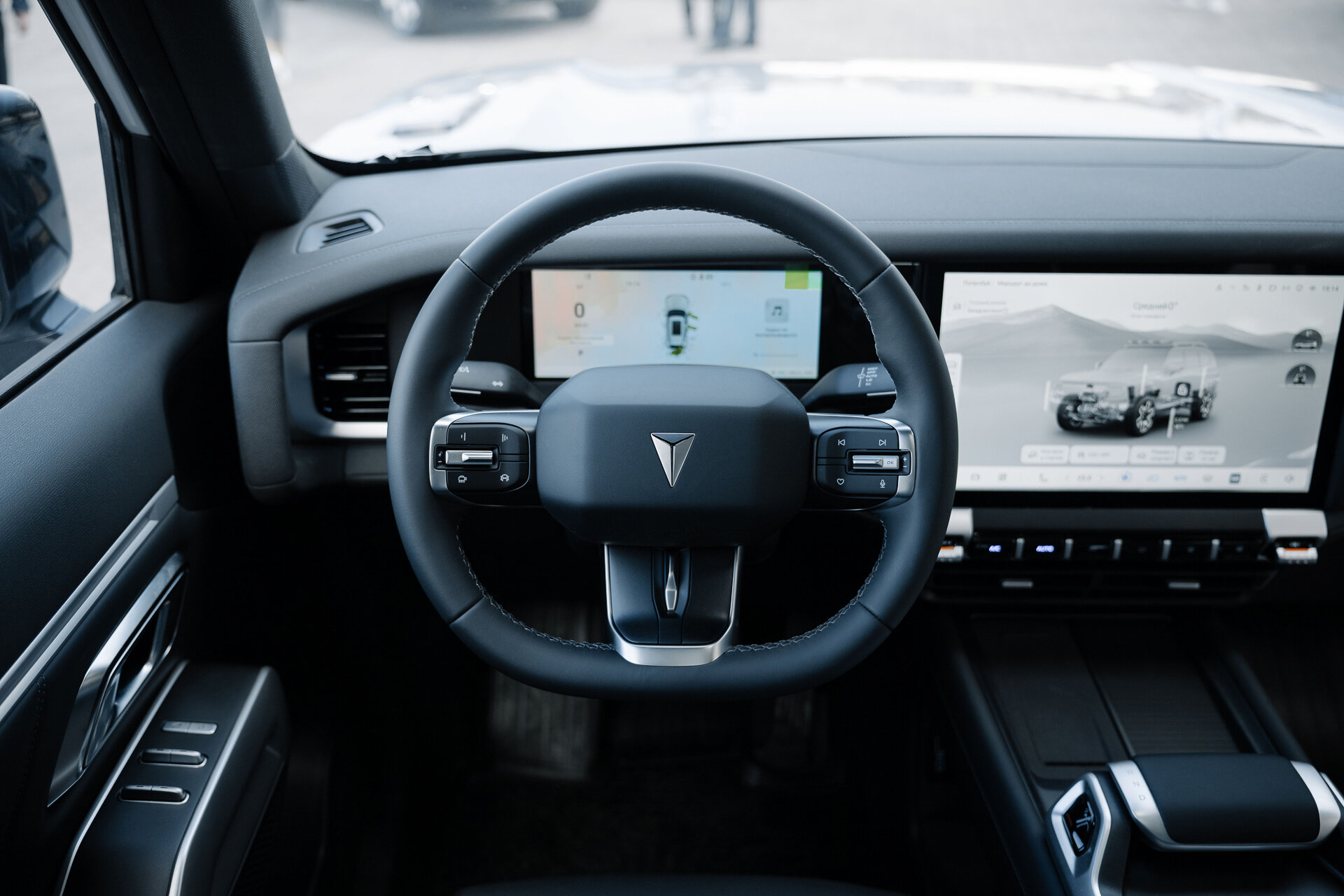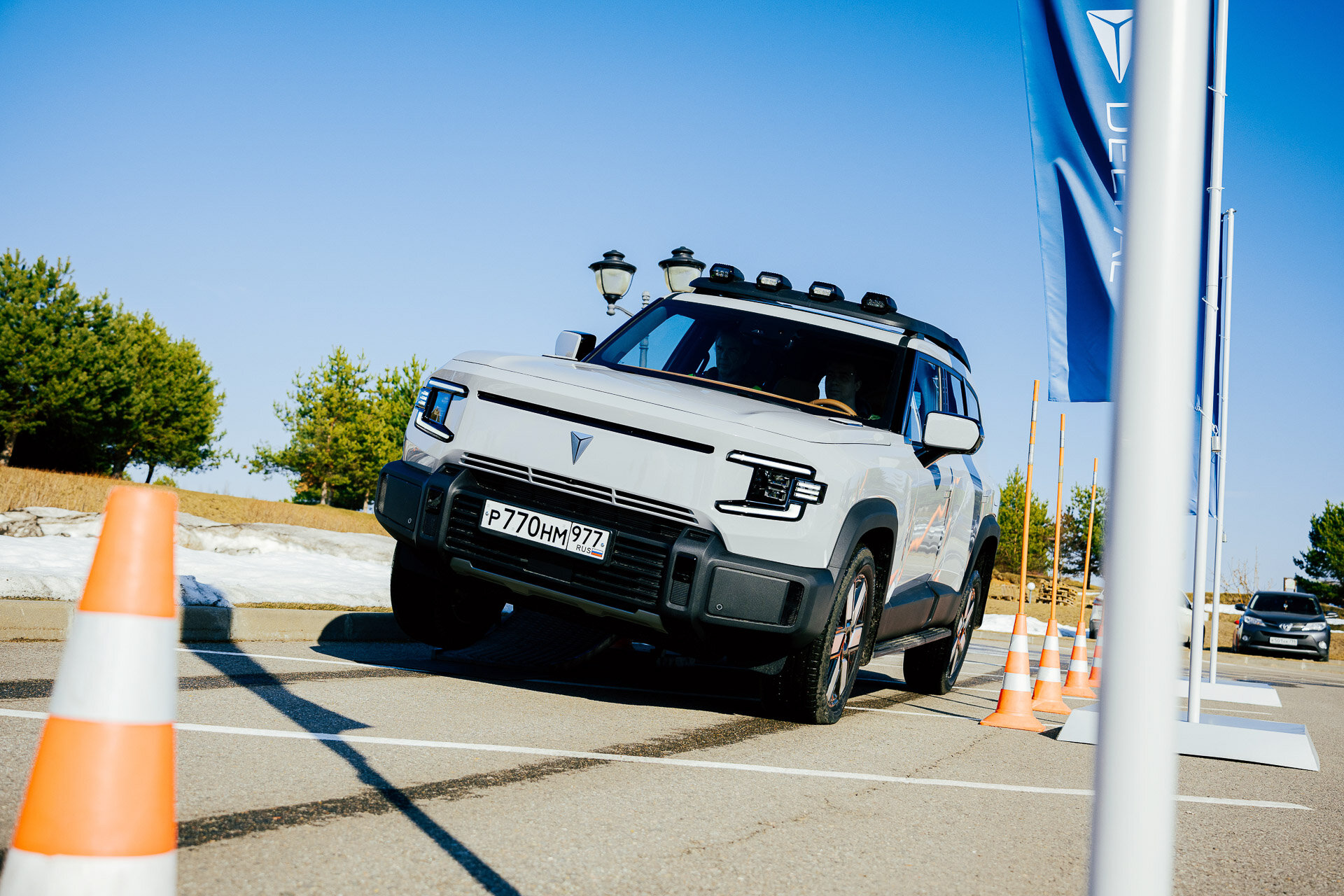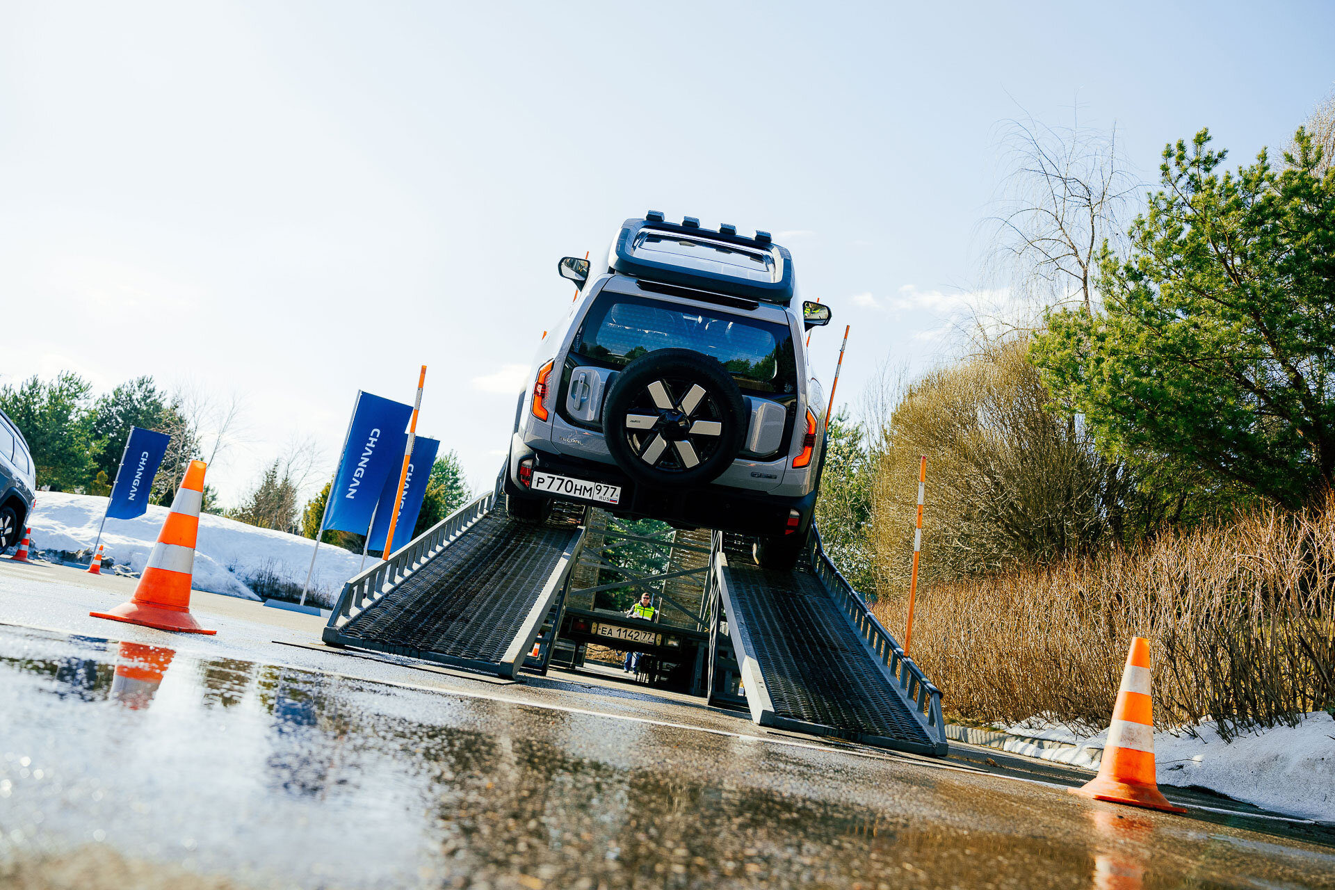 Вводные: клиренс до 240 мм (он меняется, ведь здесь пневмоподвеска); углы заезда: 27° спереди и 31° сзади. И по фото видно, что колёса находятся весьма близко к краям кузова. Справился ли Deepal с препятствиями? Играючи! Некоторые, и я в том числе, посетовали, что у нас не было возможности искупать его в грязючке… ведь ранняя весна — как раз самое то для этого. Но для таких процедур, по-хорошему, нужна и иная резина, а продаваться он будет на городской «обуви».