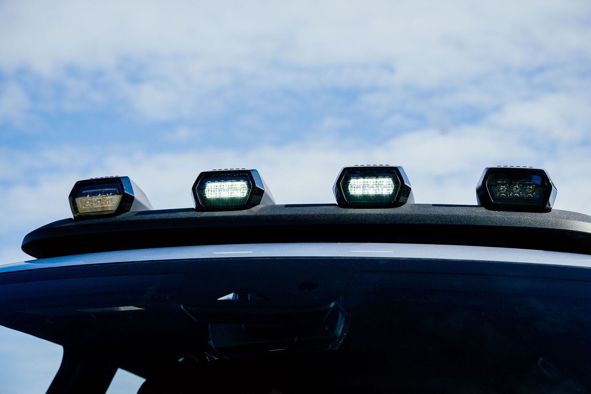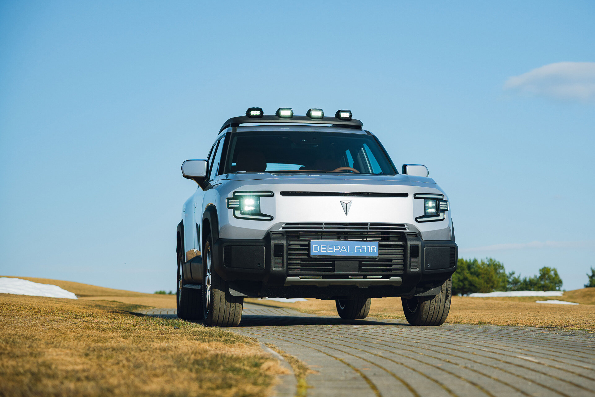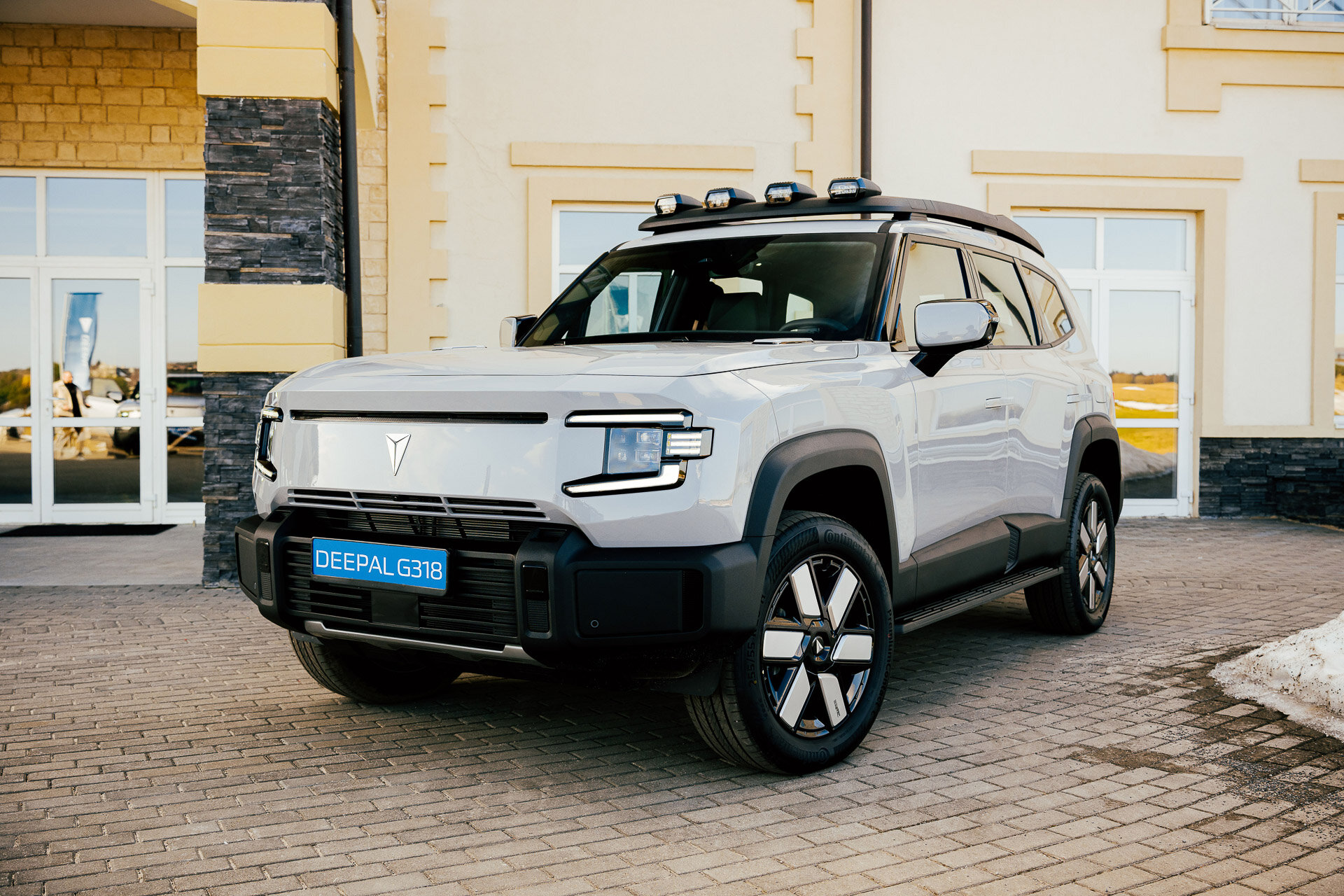 Deepal G318 — ещё один автомобиль в брутальной стилистике. Спасибо, что у него нет лже-проушин под трос на бампере, как у одного конкурента… Рубленые линии с мускулистыми гранями, крупные зеркала, интересный рисунок световых блоков и один из самых примечательных элементов — дополнительный блок света на крыше. Естественно, он вписан в документы.