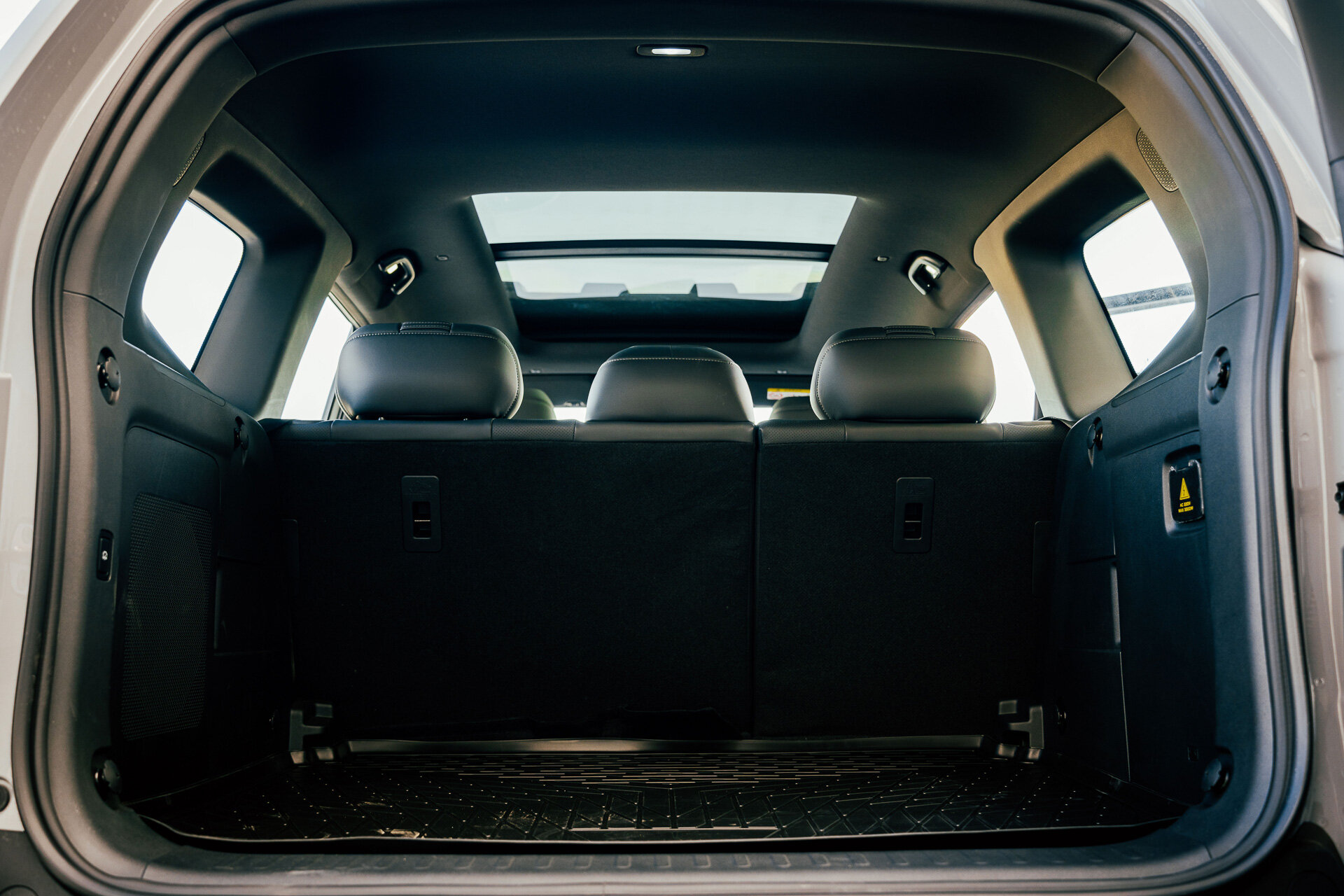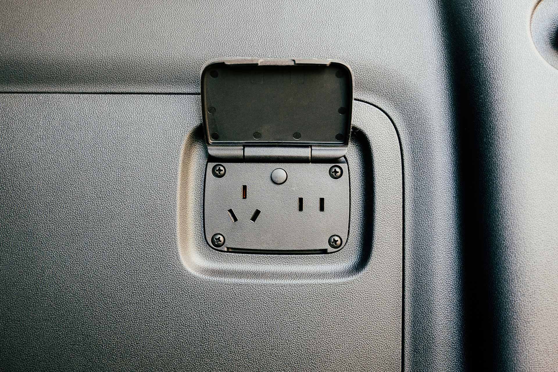 Несколько слов о внутрянке, но перед этим упомяну, что, возможно, это и незаметно сразу, но автомобиль крупный, пять метров в длину. Багажник вот весьма правильной формы, имеется бытовая розетка на 220 вольт (до 3 кВт), но вот придётся закупиться переходником. Если модель станет популярной, обещают адаптировать этот момент.