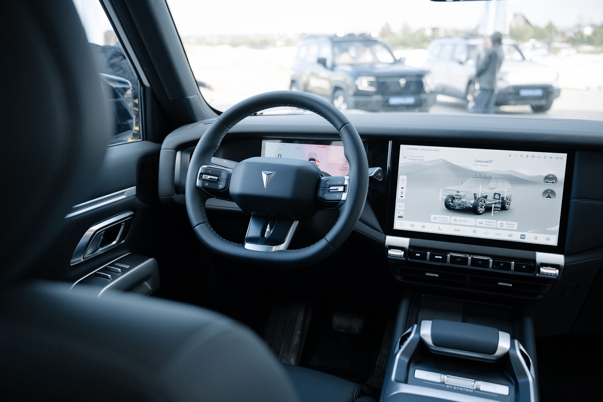 Итак, сперва дороги общего пользования. Первое, на что обращаю внимание, — это высокая посадка, ощущение, что ты в рамном внедорожнике, хотя это не так. Обзор хороший, 360°-камеры позволяют смело маневрировать в местах парковки. Здесь всё как сегодня принято. А ещё автомобиль запоминает, выключили ли вы активное удержание в полосе. Знаю, для многих это важный пункт. Проверил!