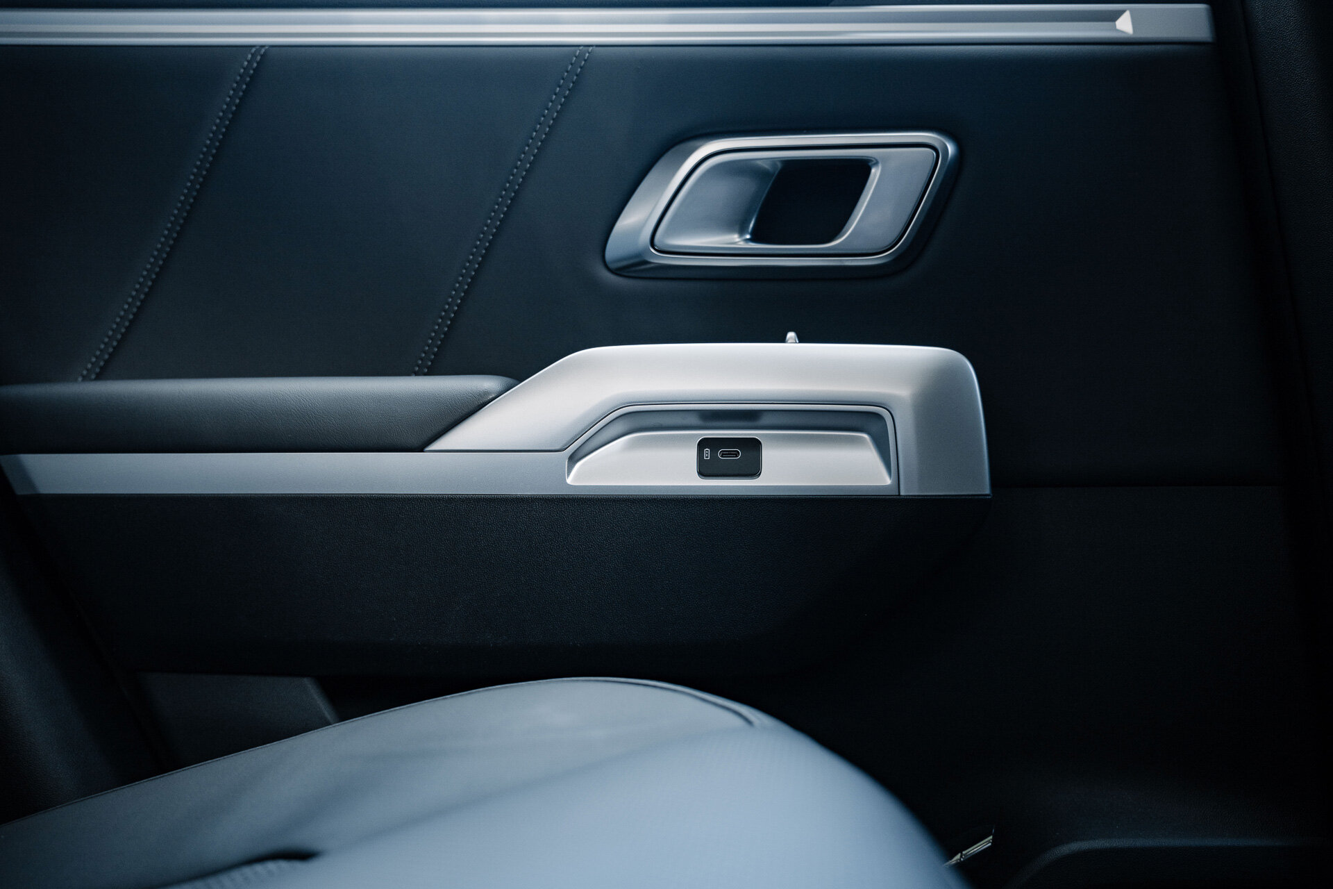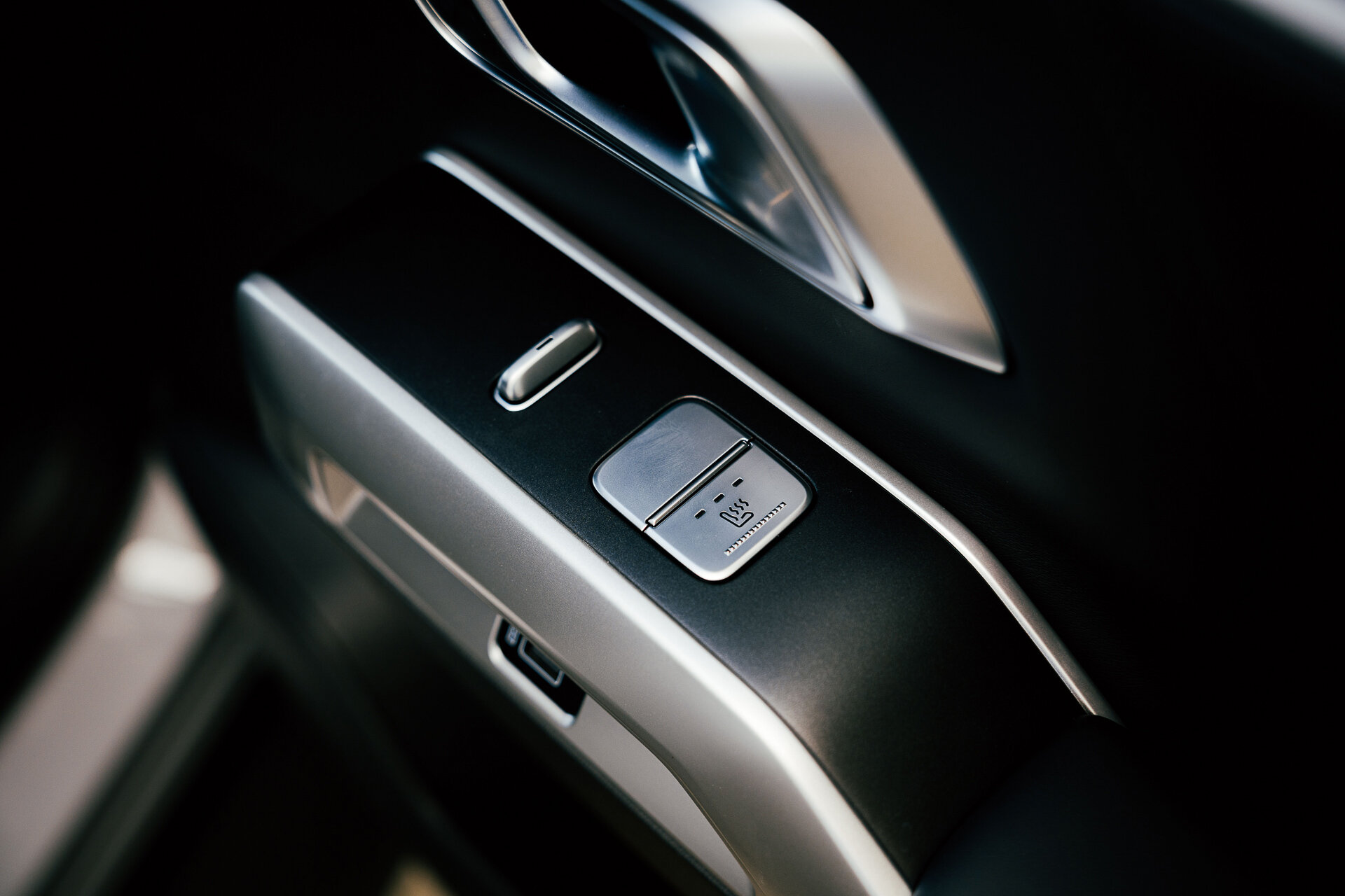 Ещё из необычного, что хочу отметить — кнопки подогрева второго ряда находятся на дверях, и там же расположены разъёмы для зарядки смартфонов. Причём с одной стороны это USB-A, а с другой USB-C. Необычно.