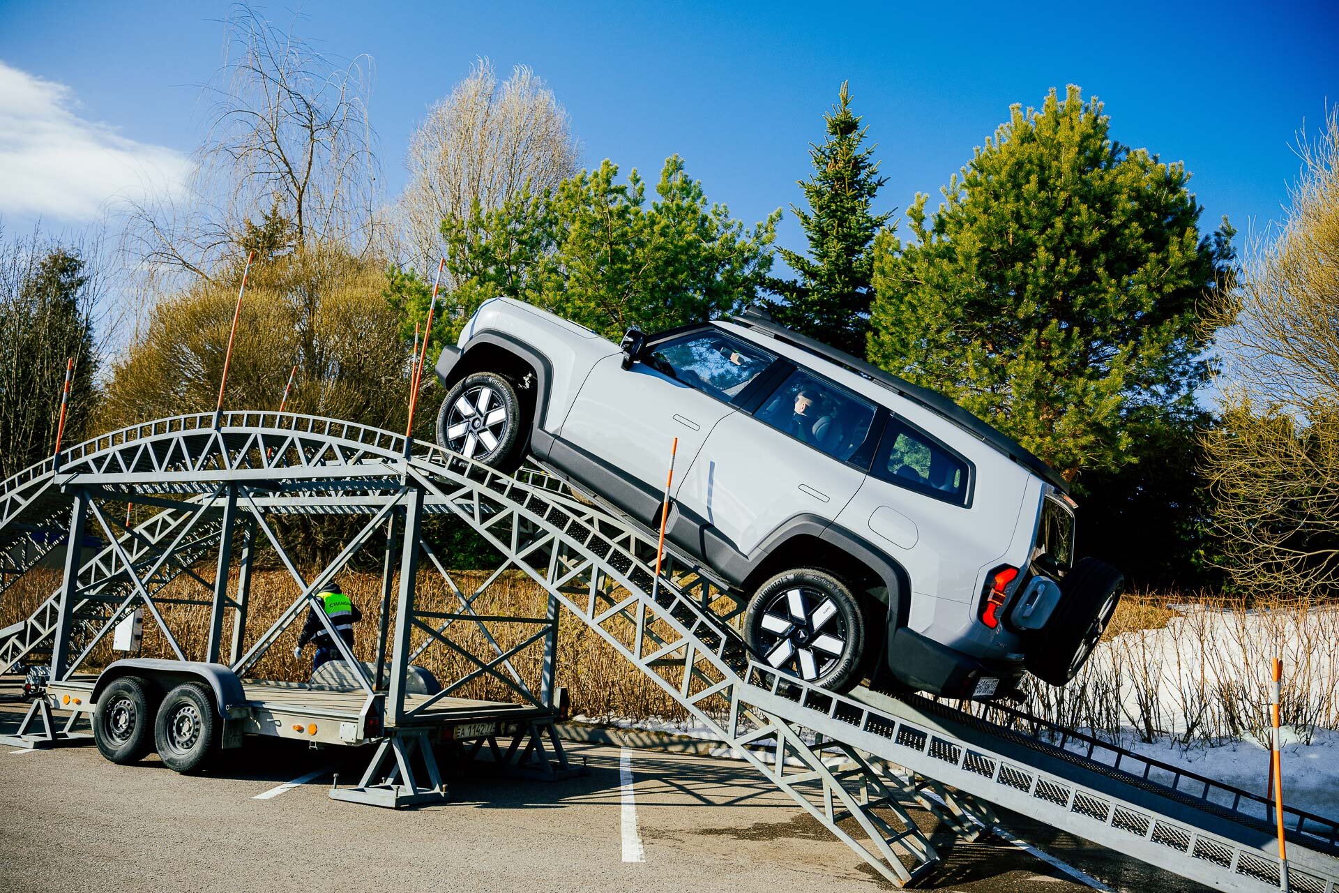 Пути у нас было аж два, точнее, два формата передвижения. Мне сперва довелось прокатиться по загородной дороге и немного по городу, а затем выехать на подготовленный полигон, где можно было оценить внедорожные, я бы даже сказал, геометрические таланты.