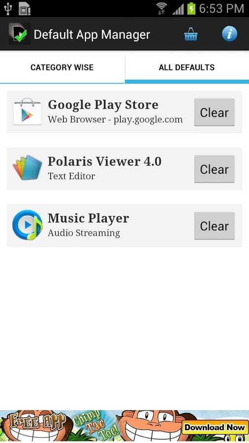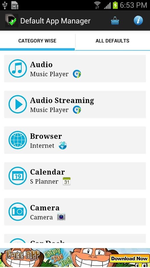 Default App Manager позволяет устанавливать и настраивать приложения по умолчанию. В отличии от других подобных приложений, DAM предлагает расширенный список, разбитый по категориям: музыка, видео, сообщения, документы, рабочий стол и т.д. Кроме того, DAM запоминает текущее приложение по умолчанию, тем самым устраняя все неприятности, связанные с внезапной сменой приложения по умолчанию.
