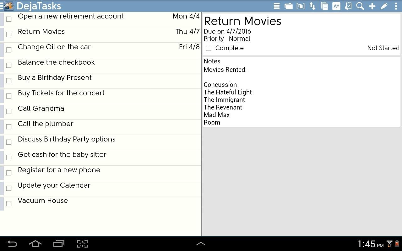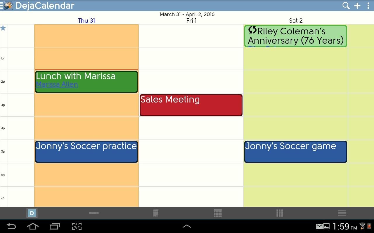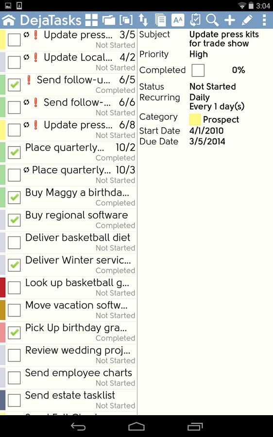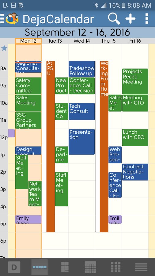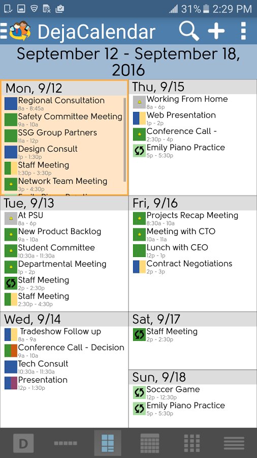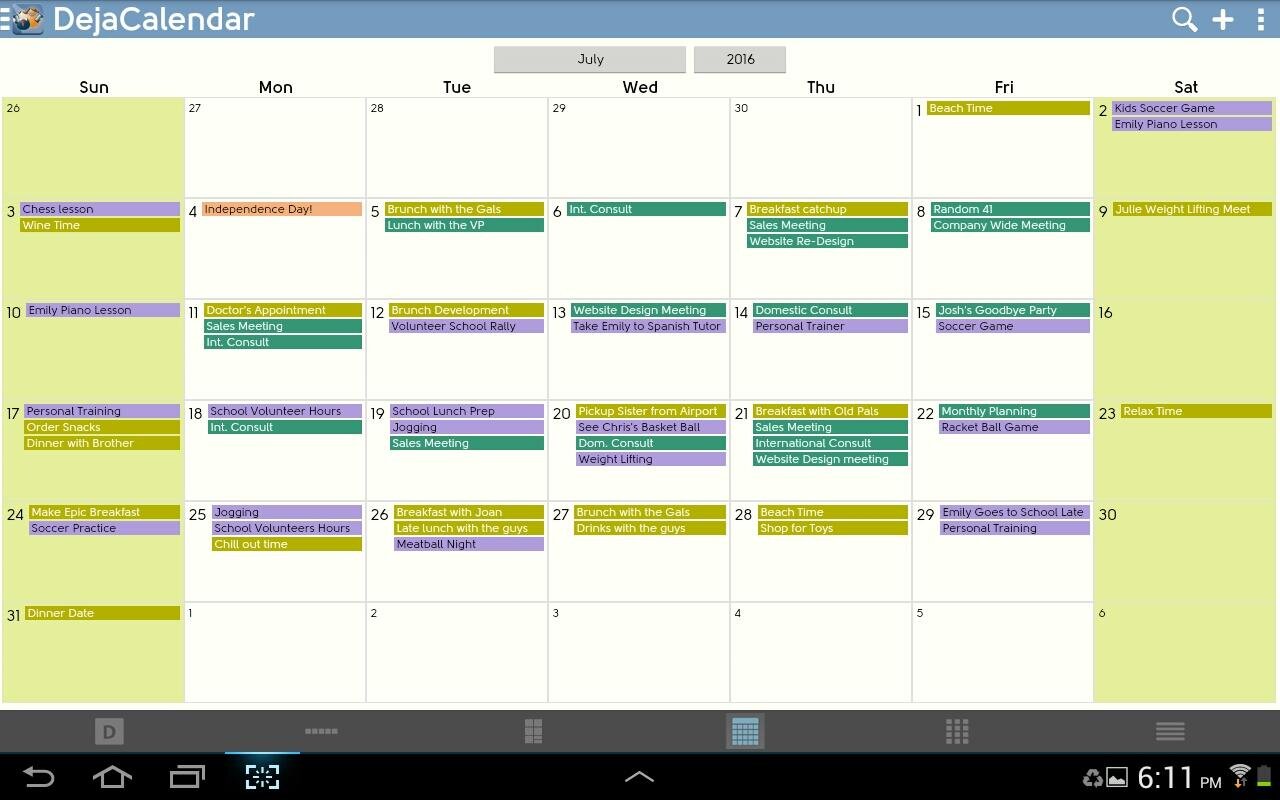 DejaOffice — Органайзер для Android со всеми аттрибутами — задачи, календарь, todo, записки, контакты. Программа позволяет синхронизироваться и с Google аккаунтом и с компьютером.