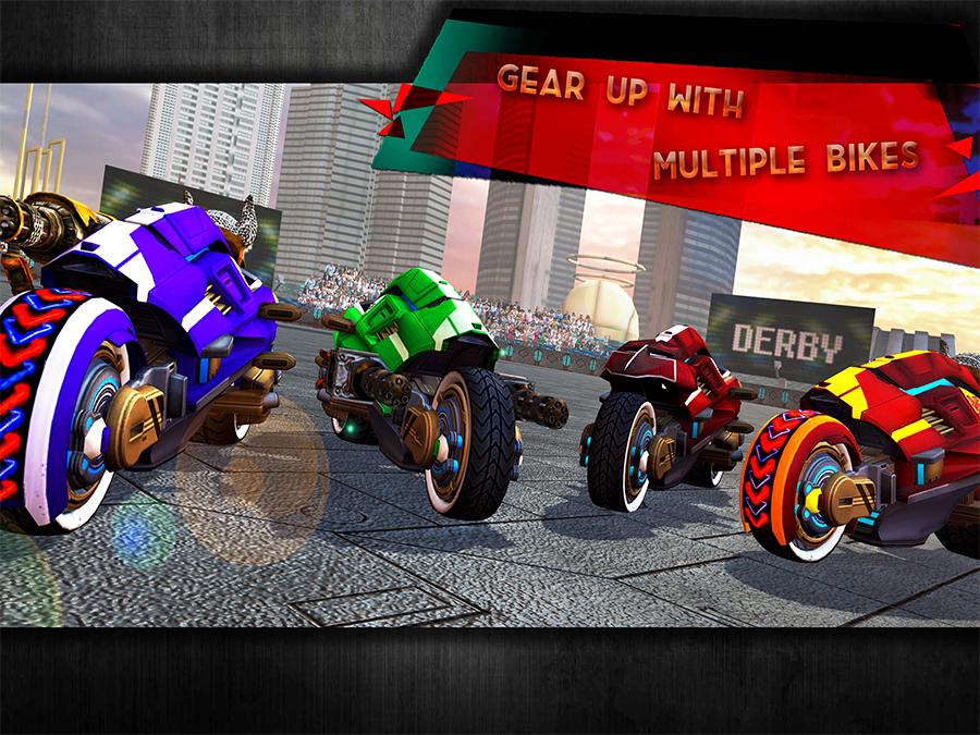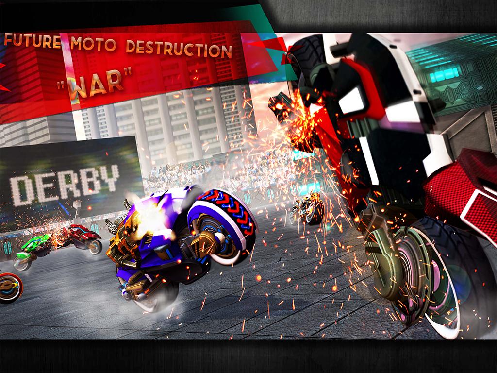 Demolition Derby Future Bike Wars – игра, которая перенесет вас в будущее где вы примите участие в опасных поединках. В этой игре вы будете управлять фантастическими мотоциклами, которые оснащены мощным оружием и способны сражаться с врагом. Бросайте вызов сильному противнику и выходите на арену. Гоняйте по арене на огромной скорости и не дайте сопернику уничтожить ваш мотоцикл. Старайтесь попасть во врага из мощного оружия, а также проделывайте невероятные маневры и тараньте его мотоцикл, не давая сопернику не единого шанса на победу. Открывайте для себя новые мотоциклы и улучшайте их по ходу игры.