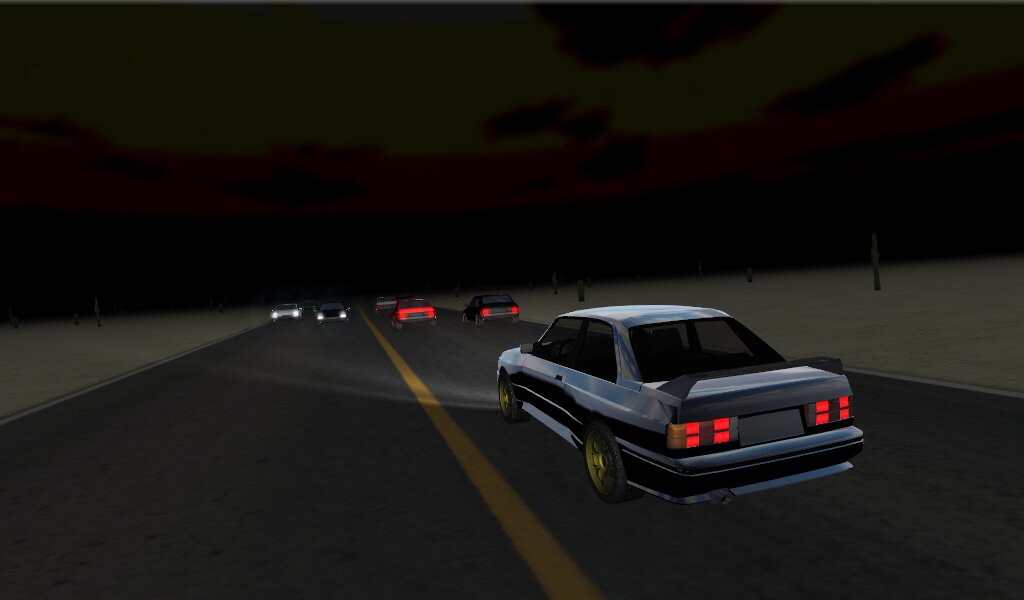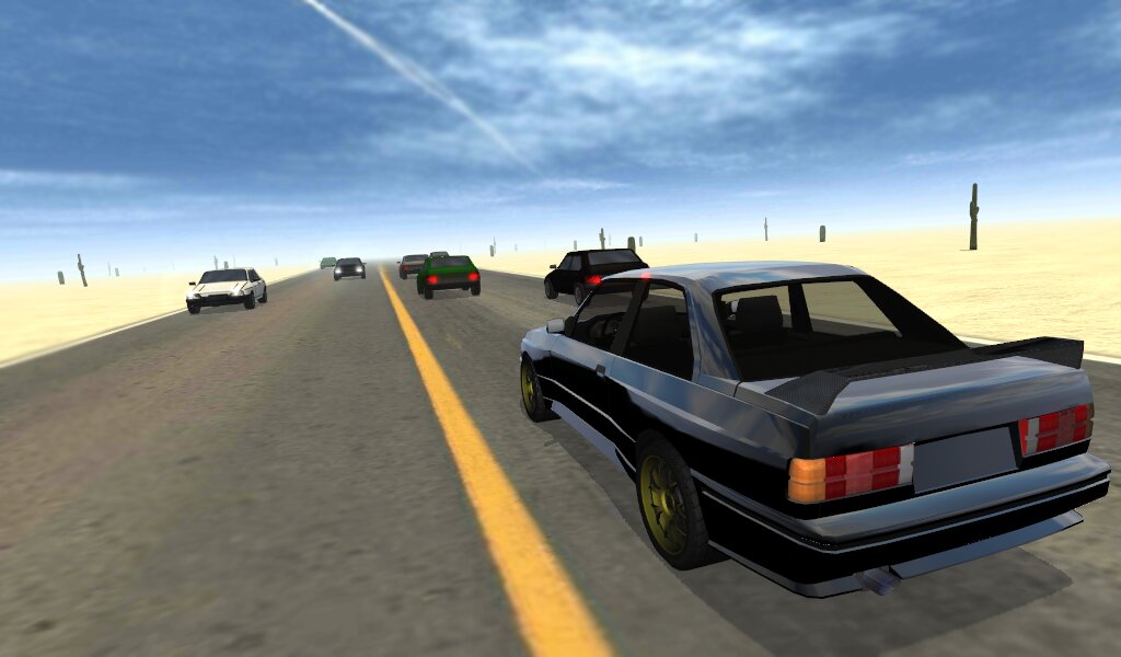 Desert Traffic Racer — это гонки по трассе с автомобильным трафиком в песчаной пустыне. Неситесь по хайвею в пустыне обгоняя автомобильный трафик и петляя между ним. В игре реализована динамическая смена дня и ночи, благодаря чему у вас есть возможность ездить в любое время суток.