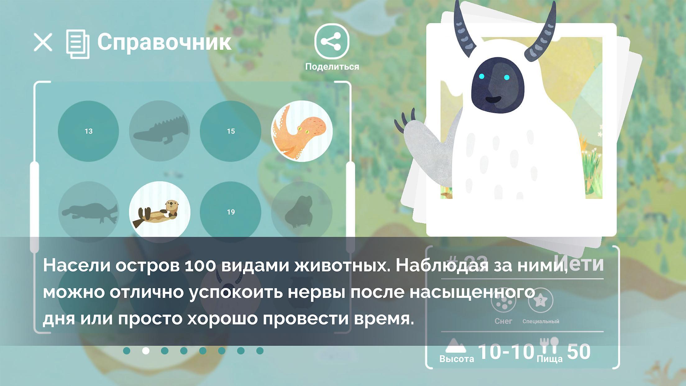 - Впечатляющая коллекция из 87 реальных и 10 легендарных животных, которые при определенных условиях могут населять один из 21 типов ландшафта. Некоторые особые животные появляются