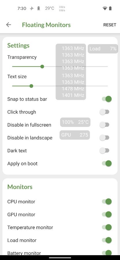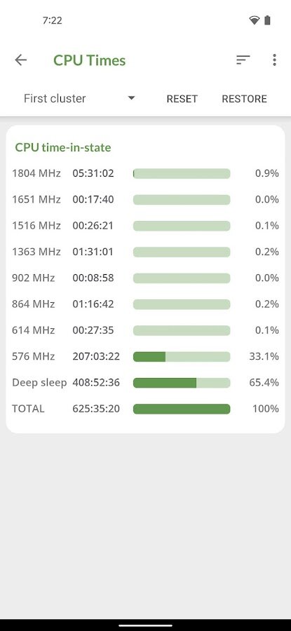 - Приборная панель: полный обзор важной информации об устройстве и оборудовании, включая мониторинг в реальном времени частоты процессора, использования памяти, статистики батареи, глубокого сна и времени работы. Со сводками и ярлыками системных настроек.