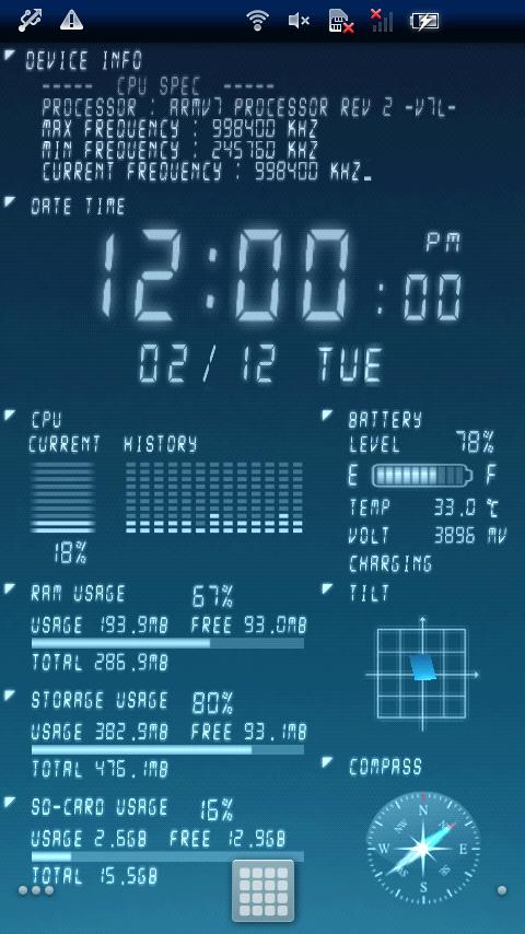 Device Info Live WallPaper – весьма полезные живые обои для вашего андроид устройства. Скачав и установив обои на экран своего смартфона/планшета, вам будет предоставлена полная информация о: