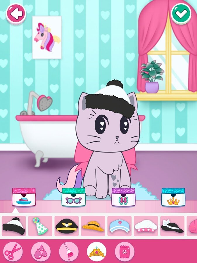 Не забудьте побаловать и любимых питомцев Дианы! Выберите, за каким питомцем ухаживать, подстригите ему шерстку и сделайте его образ особенным, выбрав забавный аксессуар, такой как бабочка, диадема и многое другое.